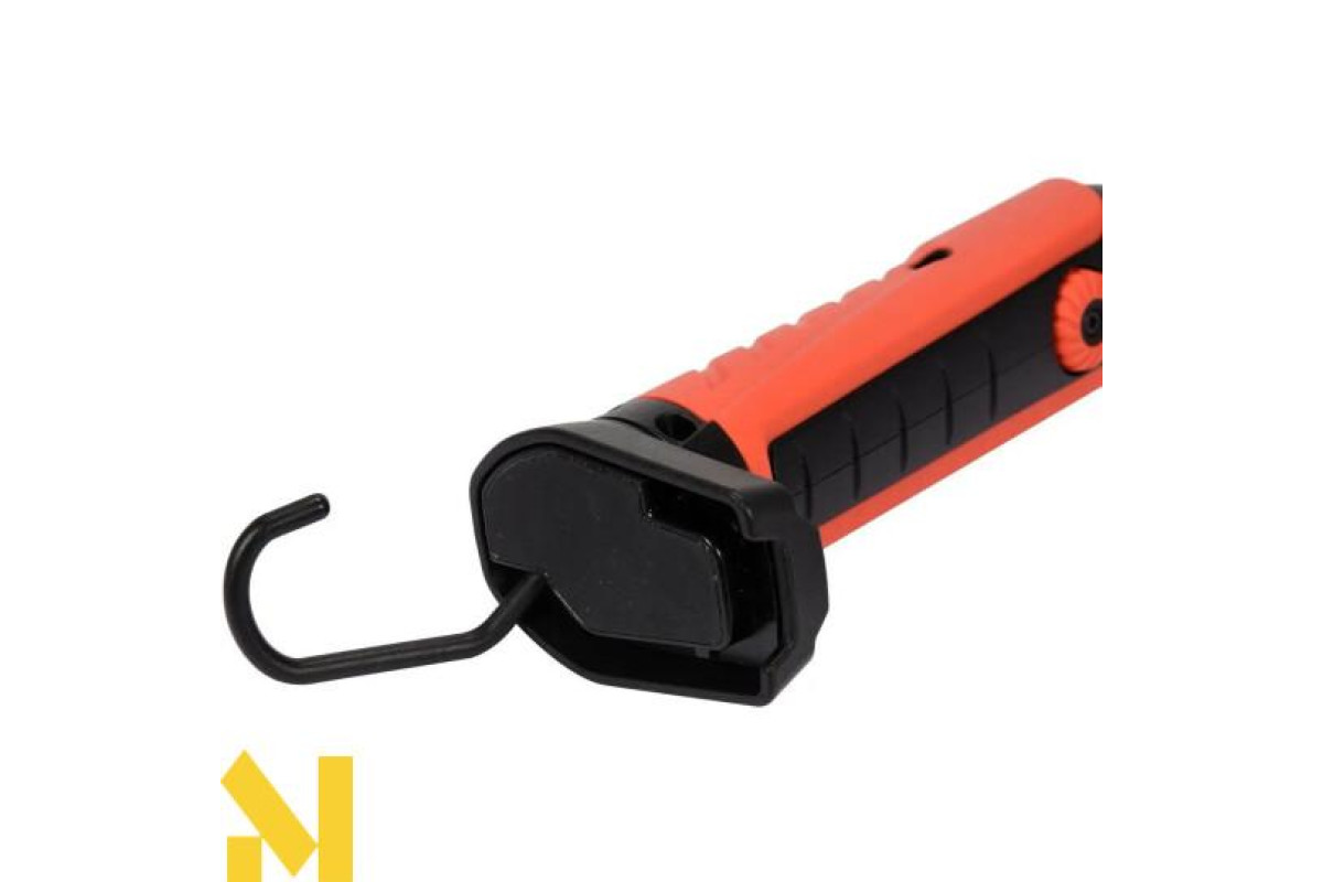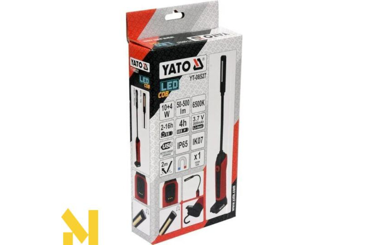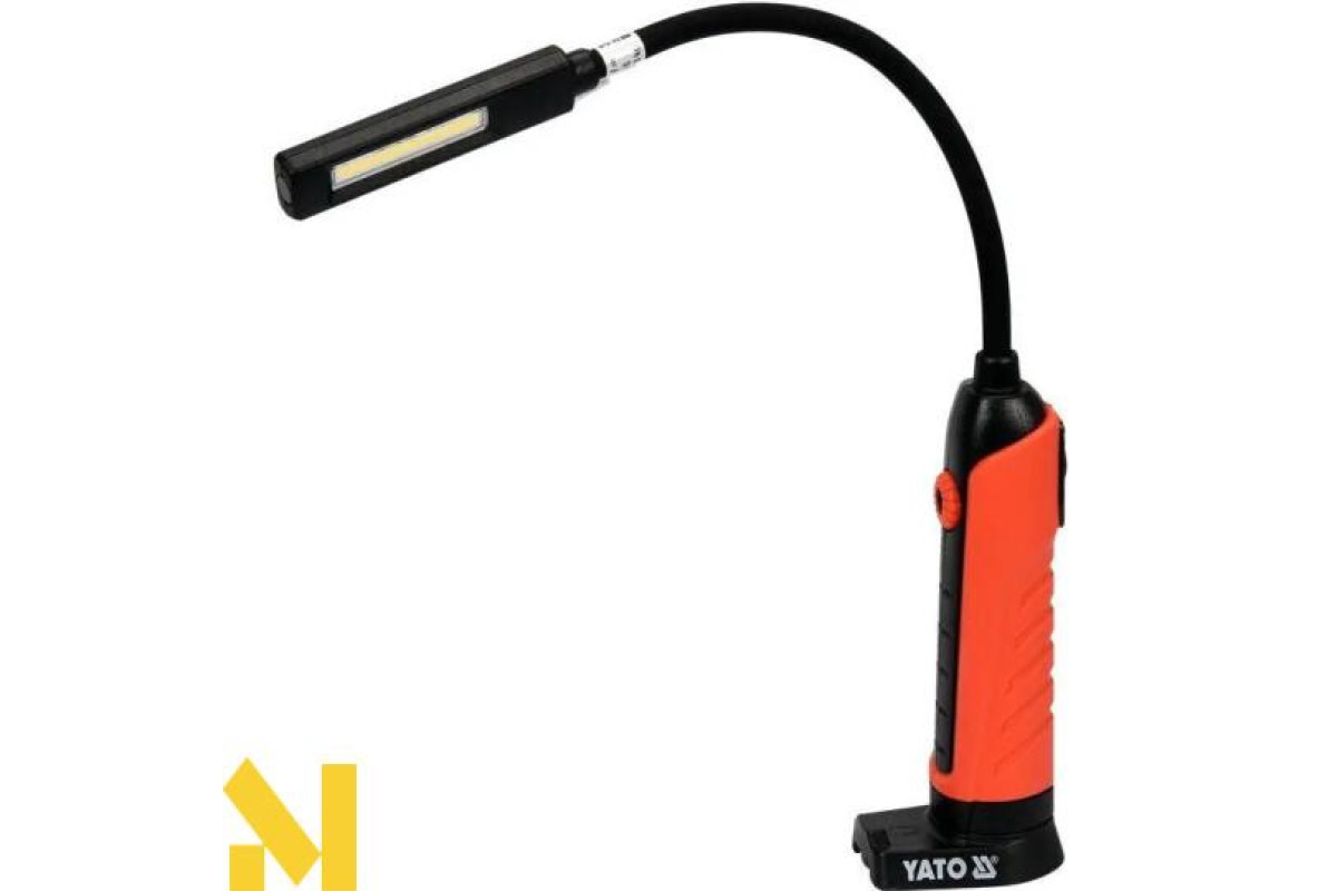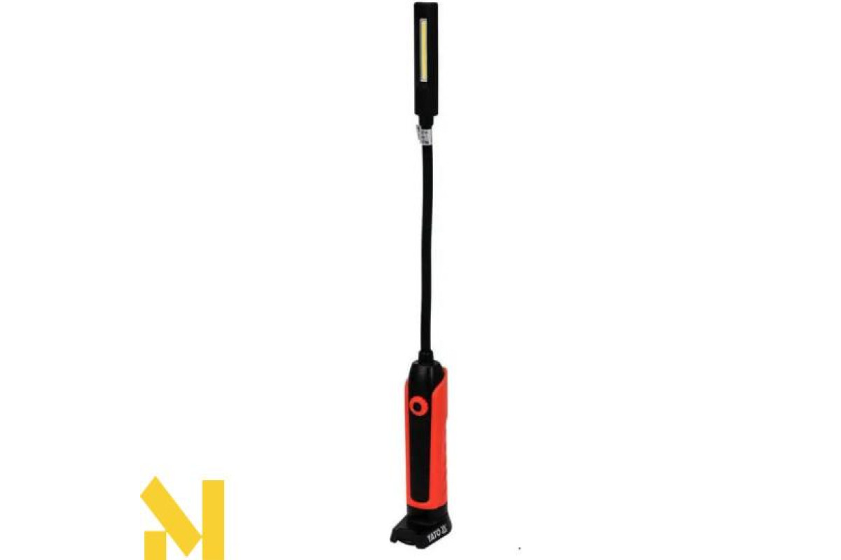Лампа для майстерні YATO завдяки гнучкому тонкому кронштейну та двосторонньому COB-діоду забезпечує освітлення важкодоступних місць.