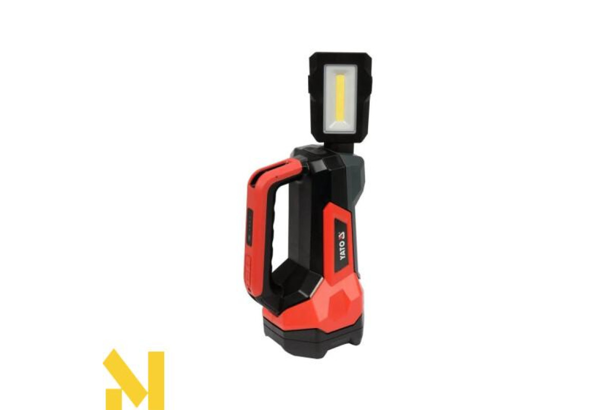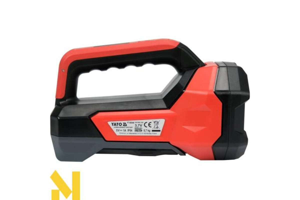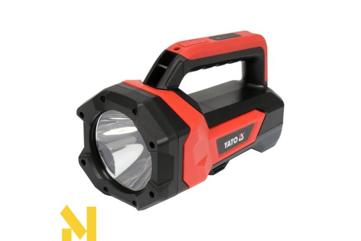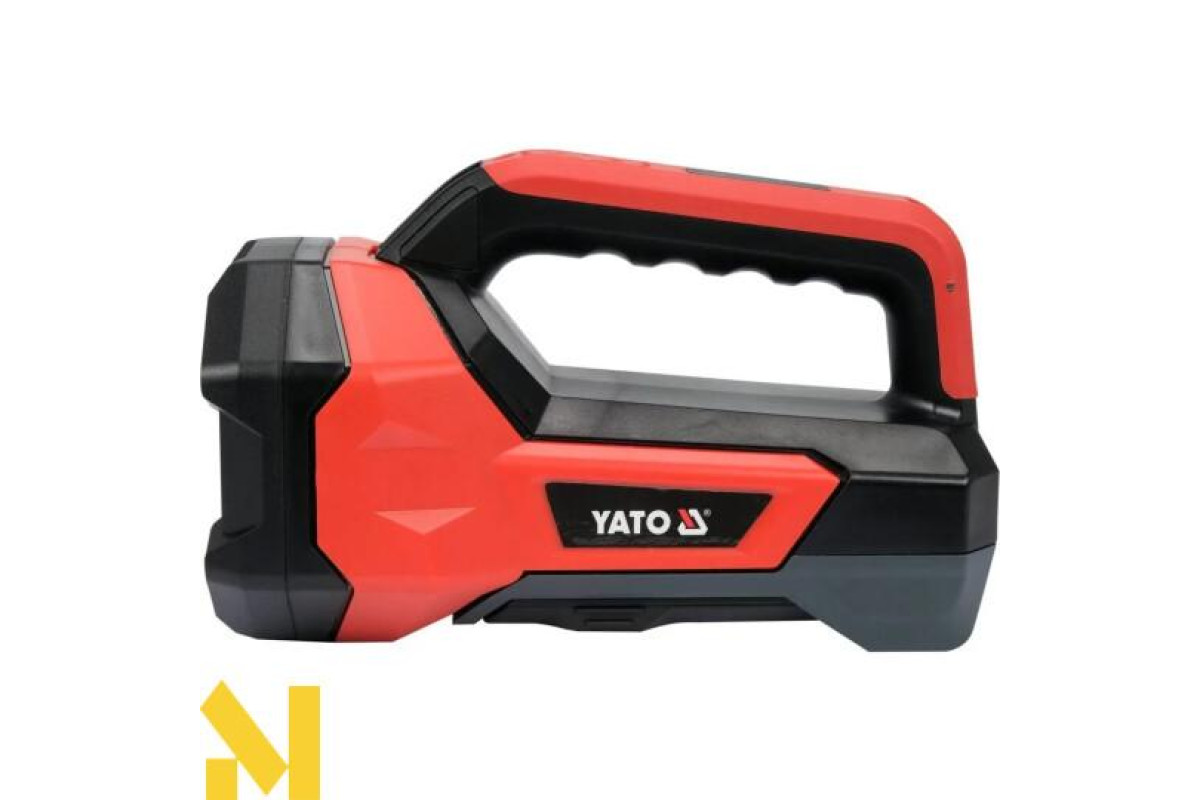 Ліхтар YATO YT-08548, що поєднує функції спрямованого прожектора та регульованого прожектора, основою якого є корпус ліхтаря. Дальність прожектора: 244 м. Прожектор світиться світлодіодом потужністю 600 лм, а прожектор - світлодіодом COB потужністю 1000 лм. Ліхтарик живиться від вбудованого акумулятора ємністю 8000 мАг, який також можна використовувати як блок живлення. У ручці є 4-ступінчастий індикатор заряду акумулятора.