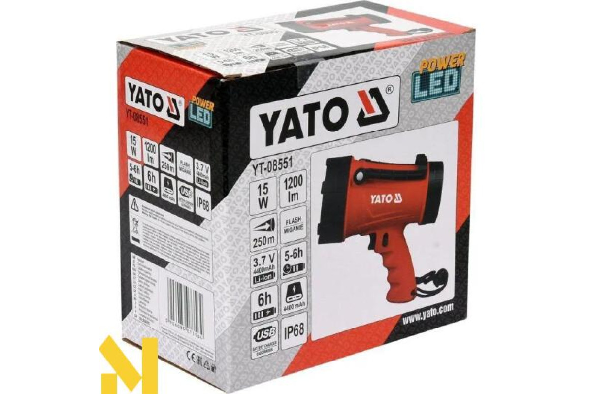 Міцний та водонепроникний (IP68) пістолетний прожектор YATO.