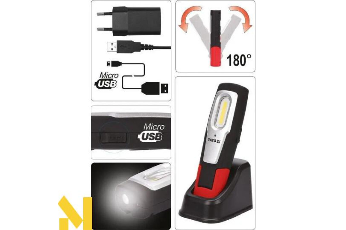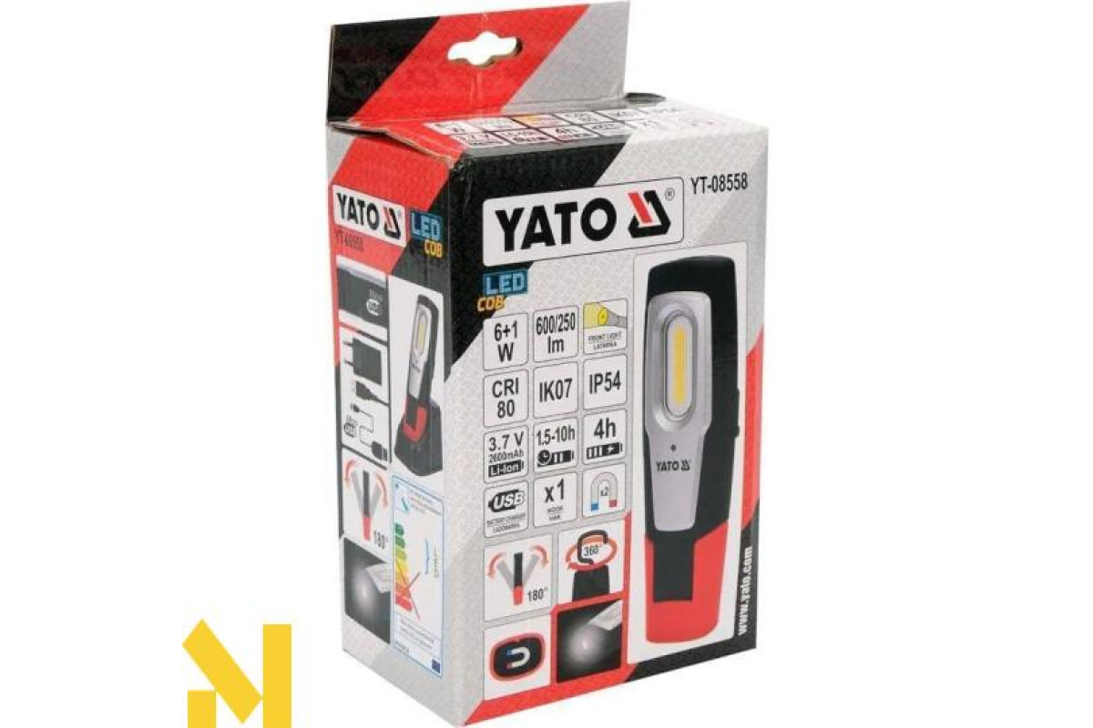Акумуляторна лампа для майстерні Yato з основним світлом 600 лм і ліхтариком 120 лм.
