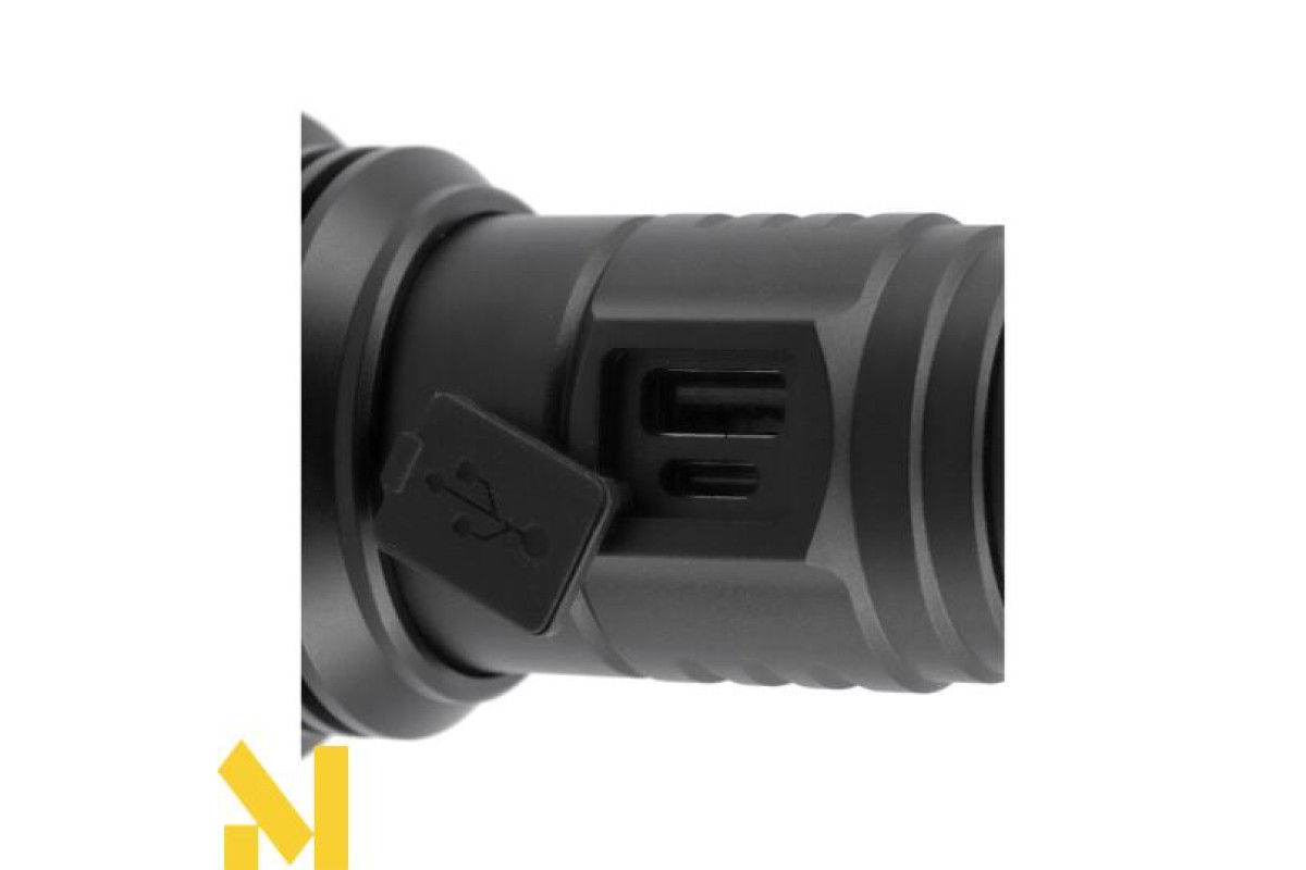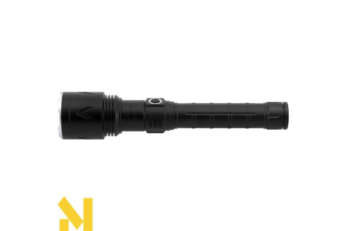 Міцний алюмінієвий ліхтарик з функцією Power Bank. Діод COB потужністю 100 Вт забезпечує світло потужністю 8000 лм. Ліхтарик працює в трьох основних режимах: високий - середній - низький і пульсуючий. Ширину світлового променя можна регулювати за допомогою функції масштабування в головці ліхтарика. Ліхтарик заряджається через USB порт. У комплект входить кабель USB 2A довжиною 50 см. Ліхтарик можна використовувати як павербанк ємністю 5000 мАг.