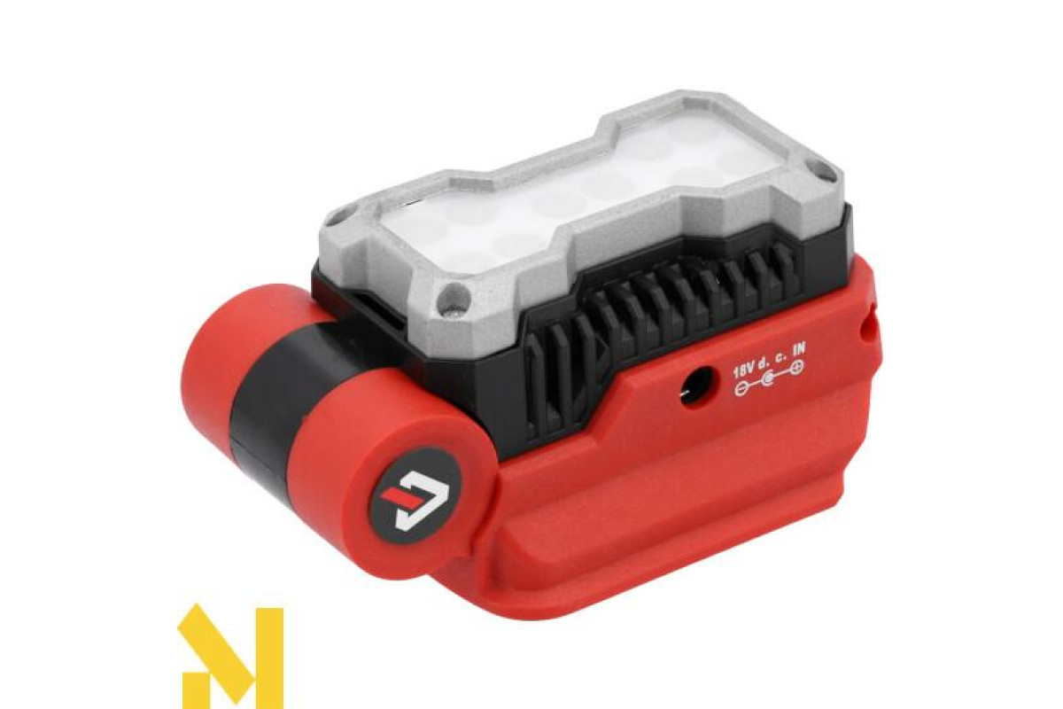 Портативний робочий ліхтар із можливістю акумулятора, що підходить для освітлення будівельних майданчиків, майстерень, кемпінгу або біваку. Його регульований кут променя та дуже міцний корпус, посилений скловолокном, забезпечують високу стійкість до механічних пошкоджень та умов навколишнього середовища. Десять світлодіодів SMD забезпечують інтенсивне, яскраве світло з широким кутом променя, ефективно освітлюючи великі робочі зони.