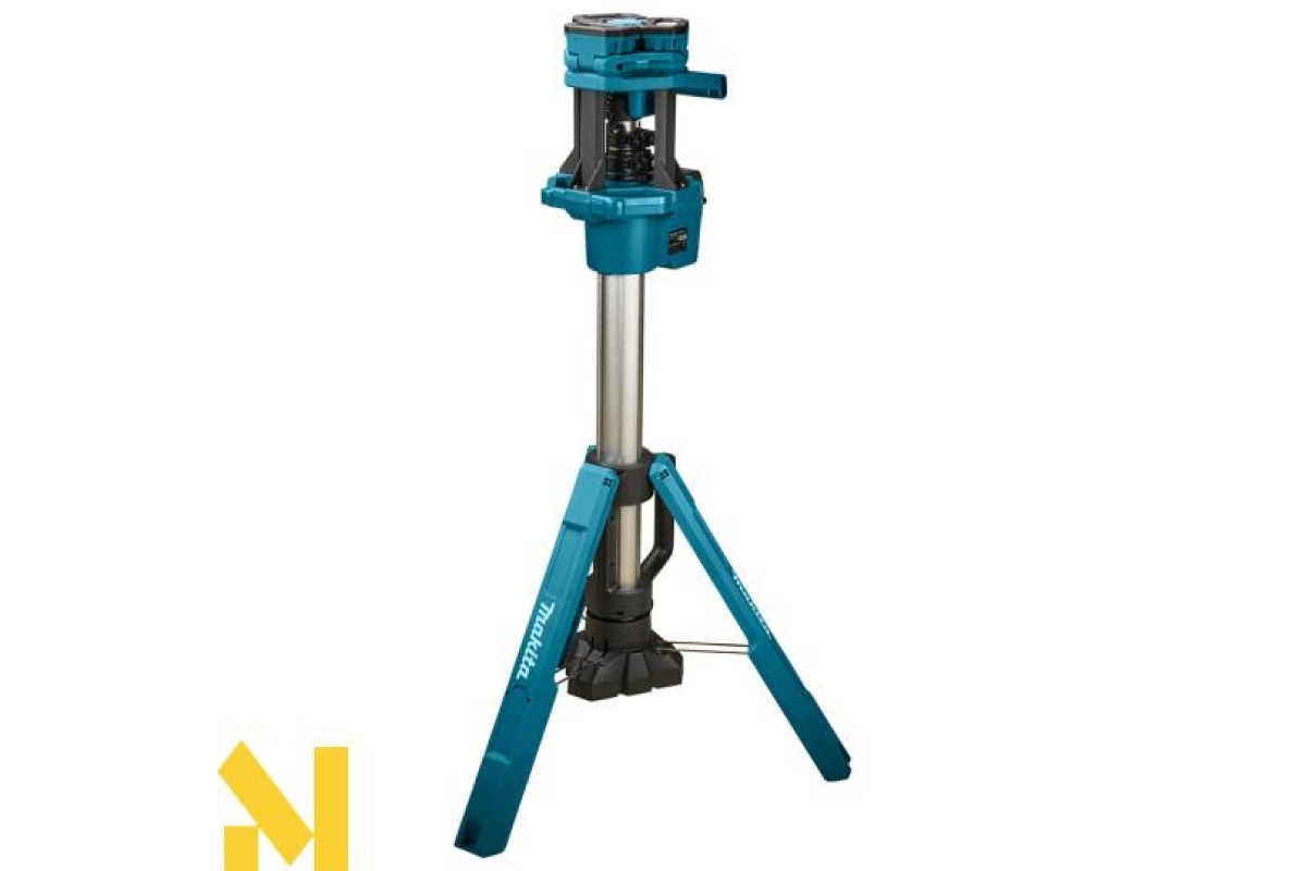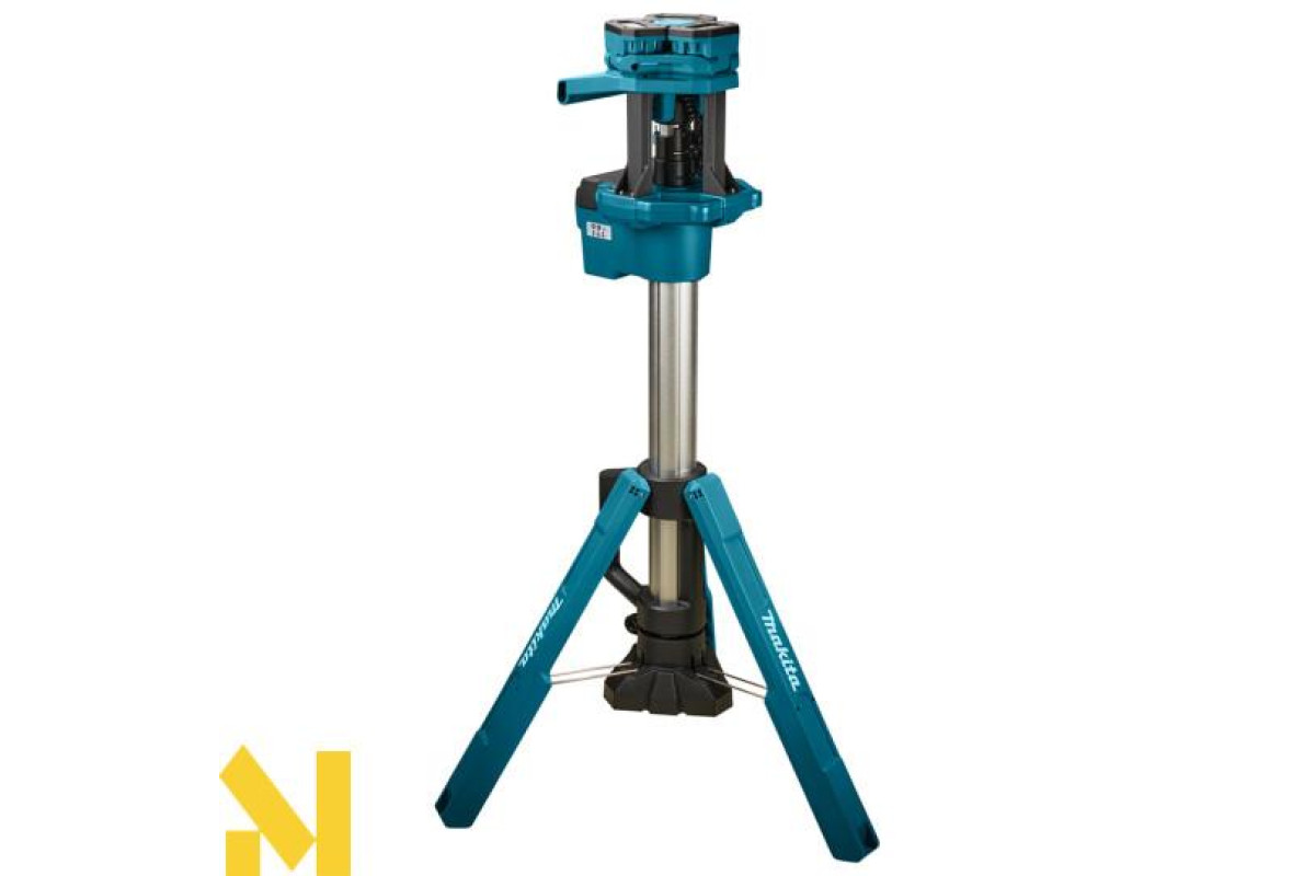Потужний будівельний ліхтар на компактному складаному тринозі.