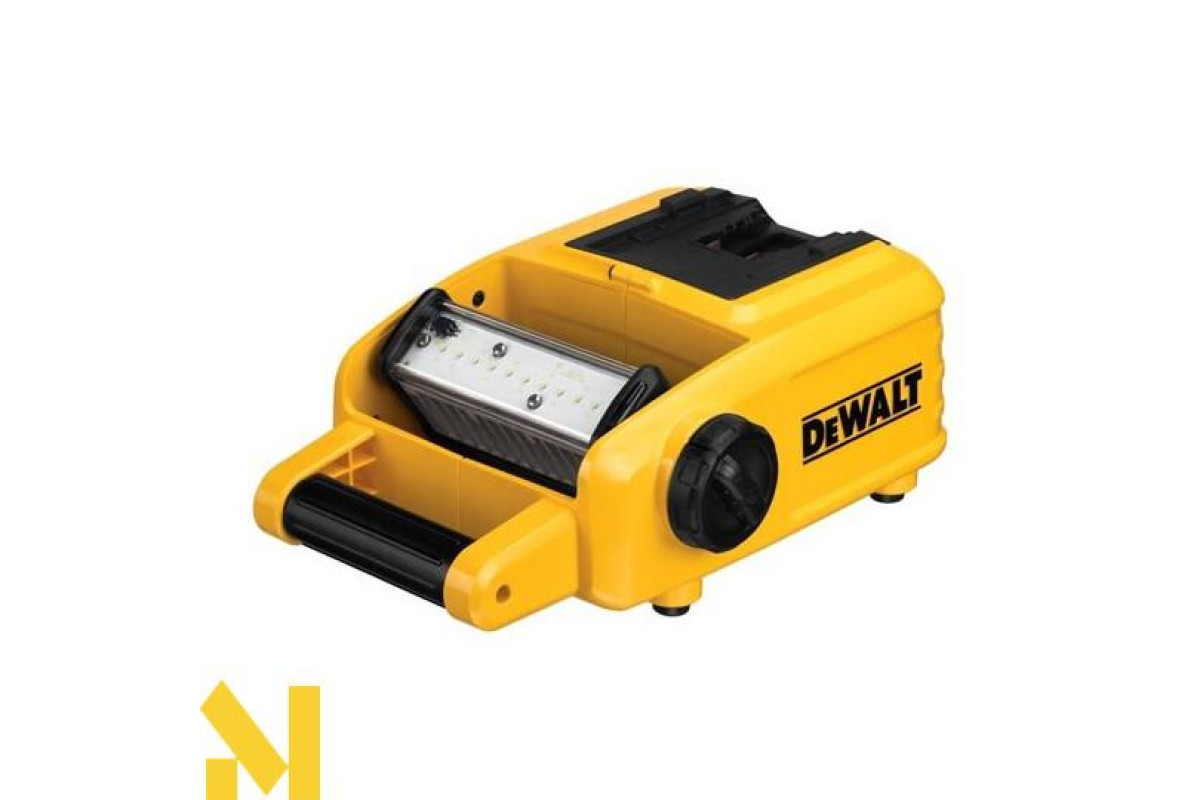 - Ліхтар DeWALT DCL060 може працювати від акумулятора 18V Li-Ion або від мережі 220V, при цьому має вихідну розетку для підключення інструменту