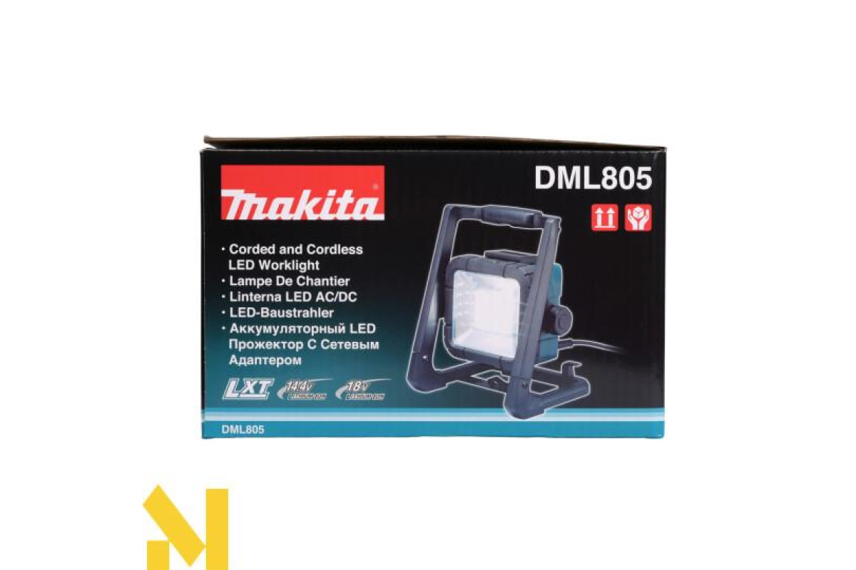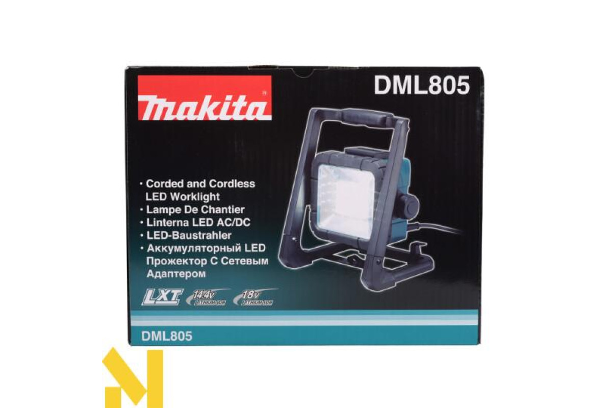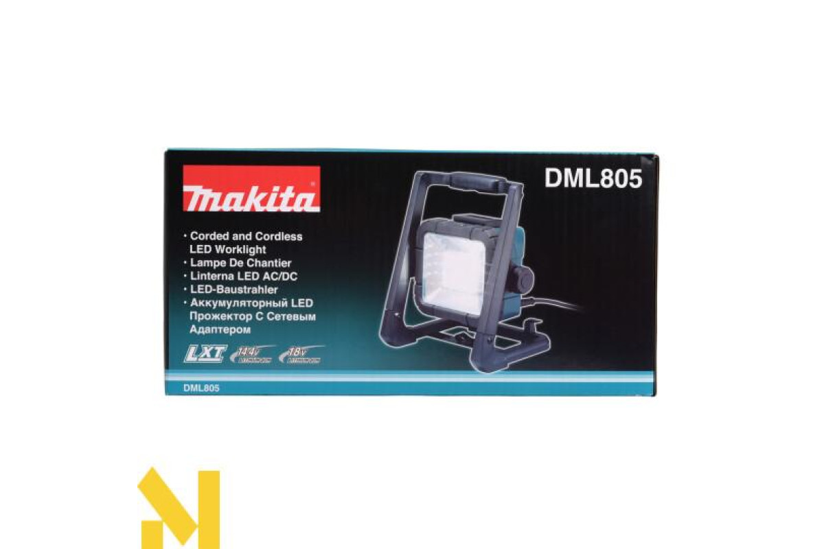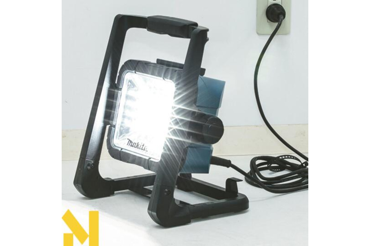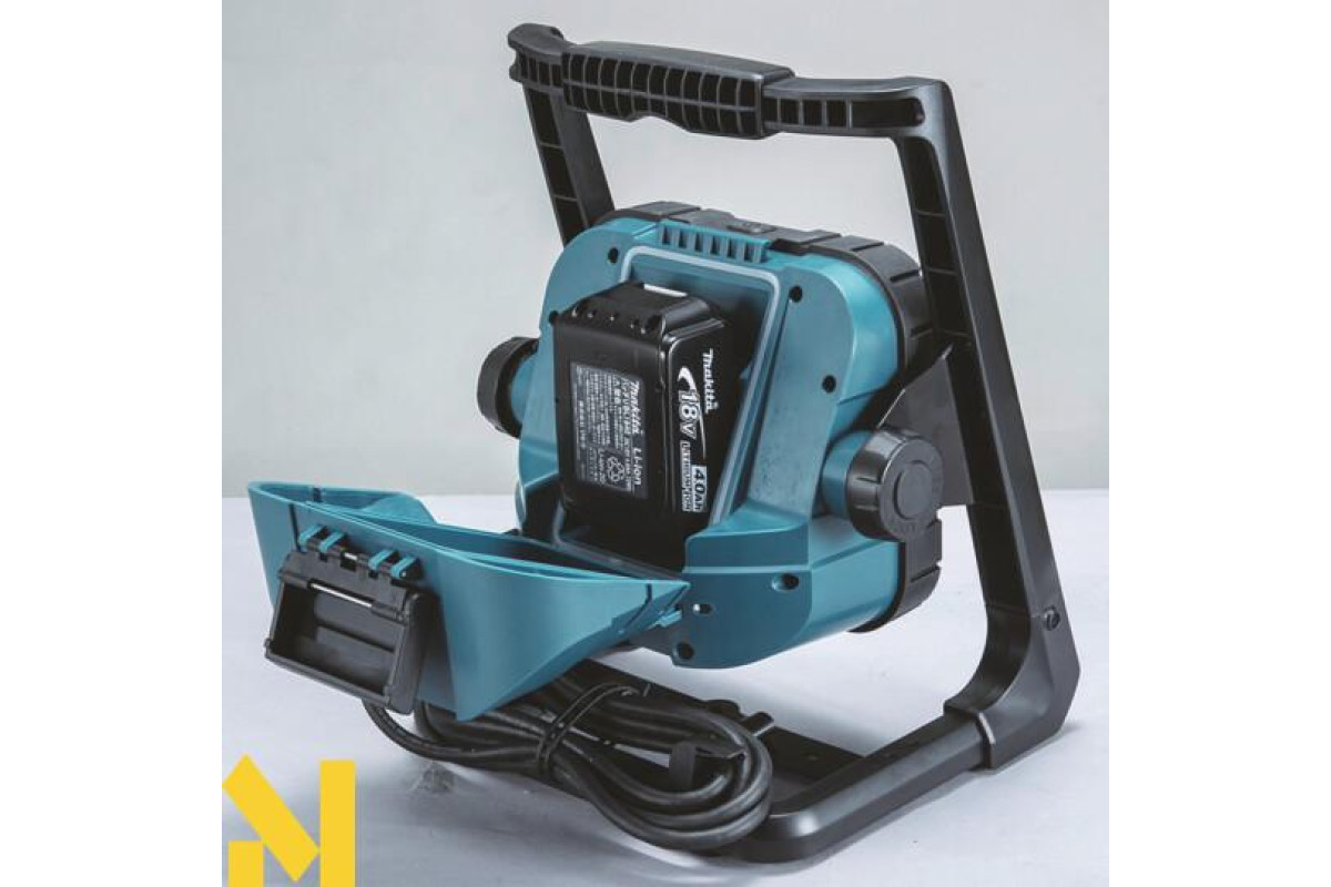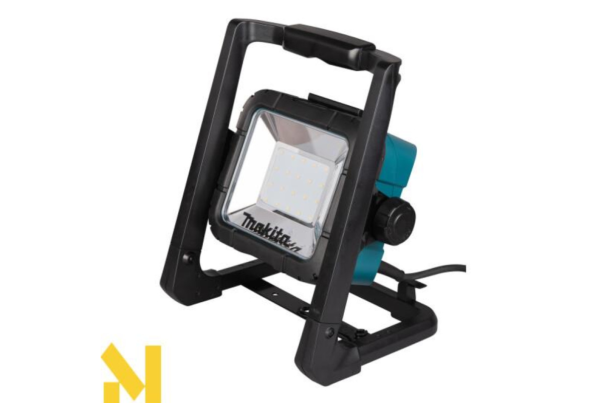 Зручна лампа DEADML805 забезпечує яскраве загальне та точкове освітлення як вдома, так і на робочих місцях. Ліхтар оснащений 20 світлодіодними лампочками та може живитися від літій-іонних акумуляторів Makita 14,4 В або 18 В, а також від мережі. Ліхтар оснащений підлоговою підставкою, яка дозволяє регулювати кут світла вгору та вниз. Ліхтар можна встановити вище рівня підлоги, розмістивши його на стійці для камери або лазера. При використанні акумулятора ємністю 5,0 Аг час роботи становить приблизно 8-16 годин.