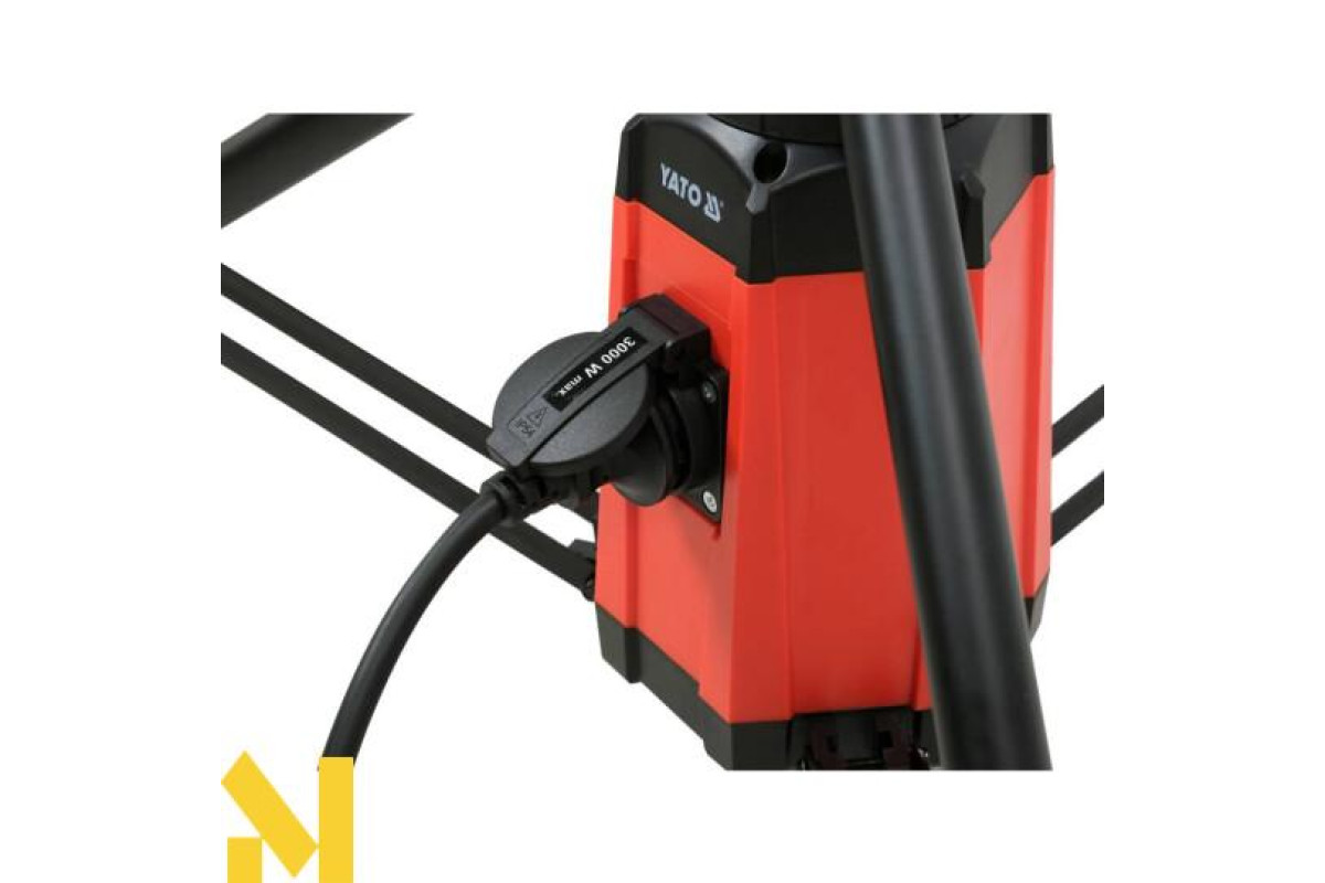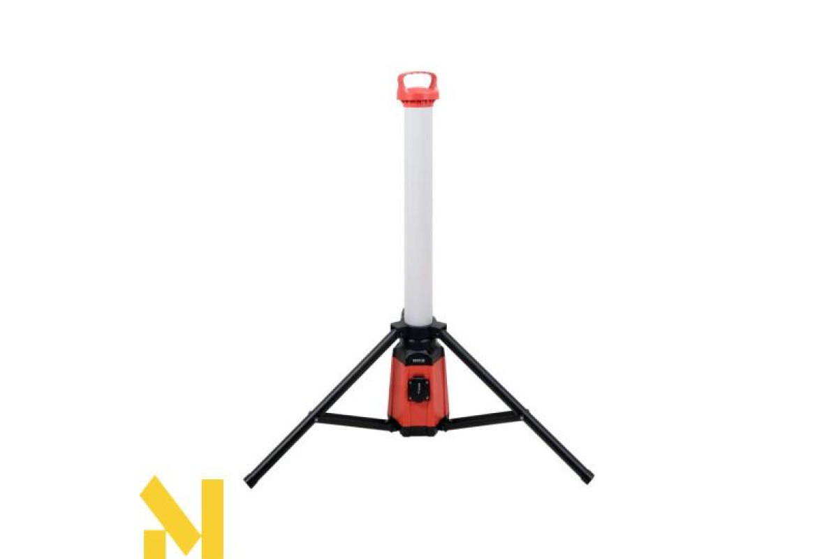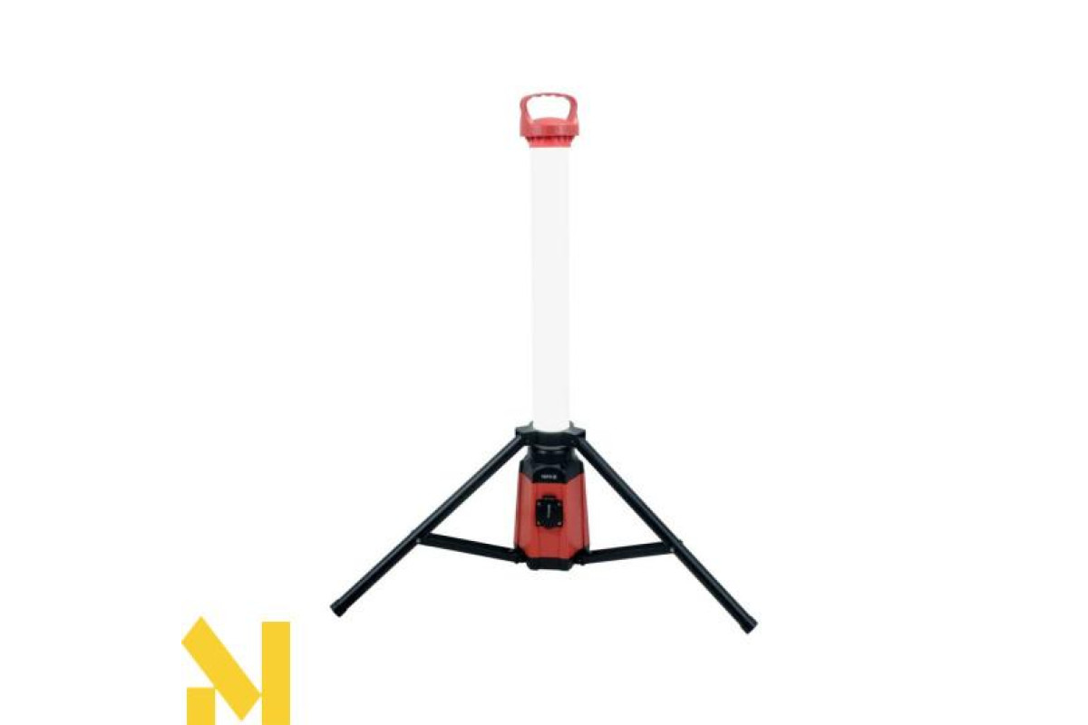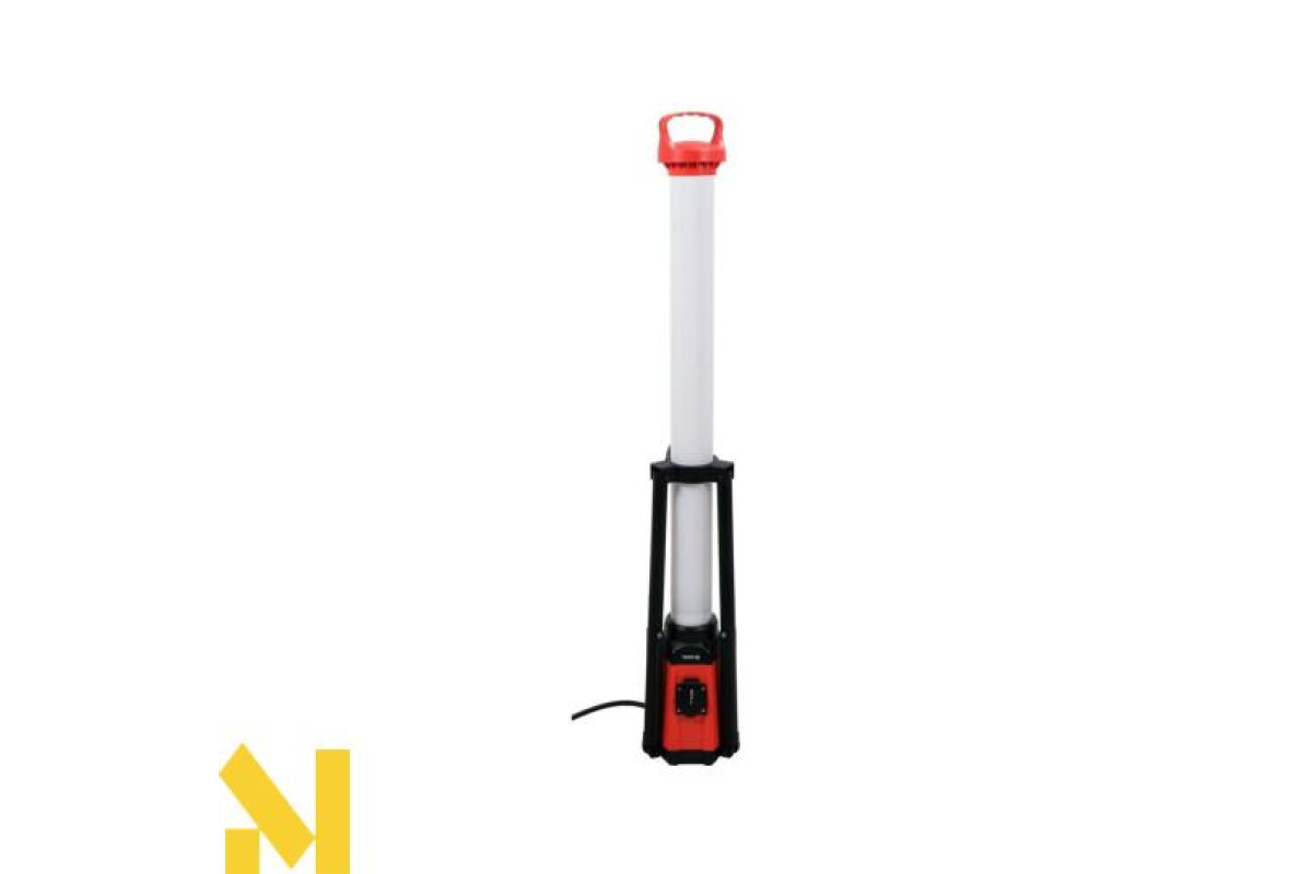 Світильник зі складним штативом, призначений для використання у приміщенні та на вулиці. Робочий режим 3800 лм забезпечує дуже гарне освітлення робочого простору у всіх напрямках. Додатковою перевагою є вбудована розетка, до якої можна підключити техніку максимальною потужністю 3000 Вт.