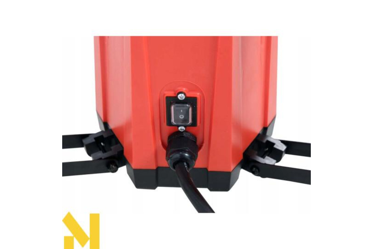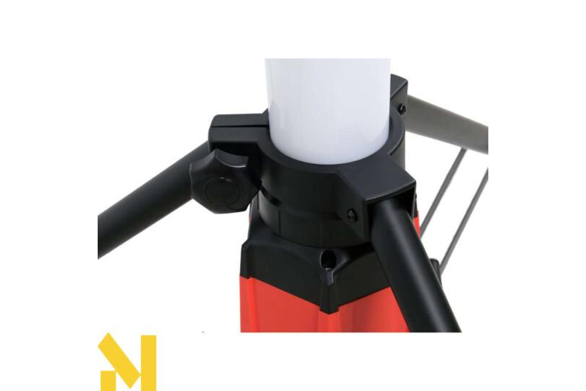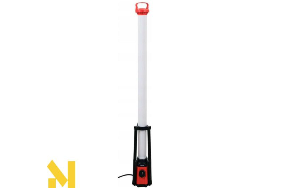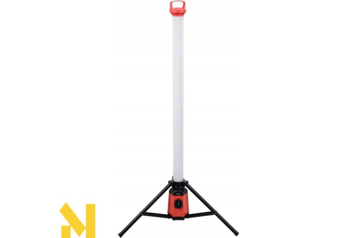 Світильник зі складним штативом, призначений для використання в приміщенні і на вулиці. Робочий режим 7500 лм забезпечує дуже хороше освітлення робочого простору в усіх напрямках. Додатковою перевагою є вбудована електрична розетка, до якої можна підключити техніку максимальною потужністю 3000 Вт.