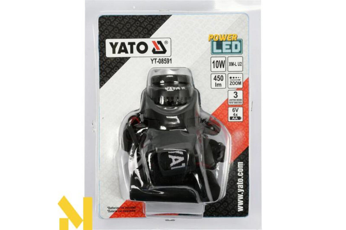 Яскраве світло і простота використання роблять налобний ліхтар YATO ідеально відповідним для ремонту і обслуговування, а також для туризму. Для роботи ліхтаря потрібно 4 елементи живлення АА.