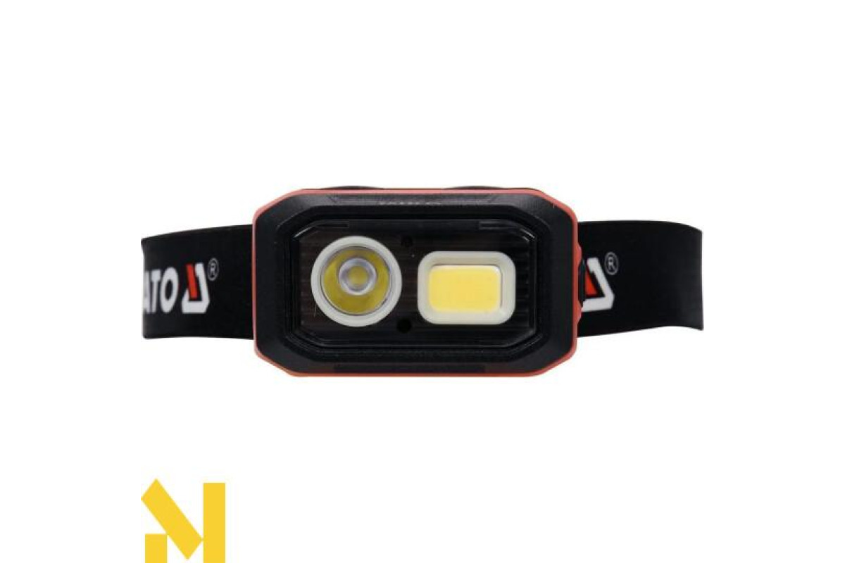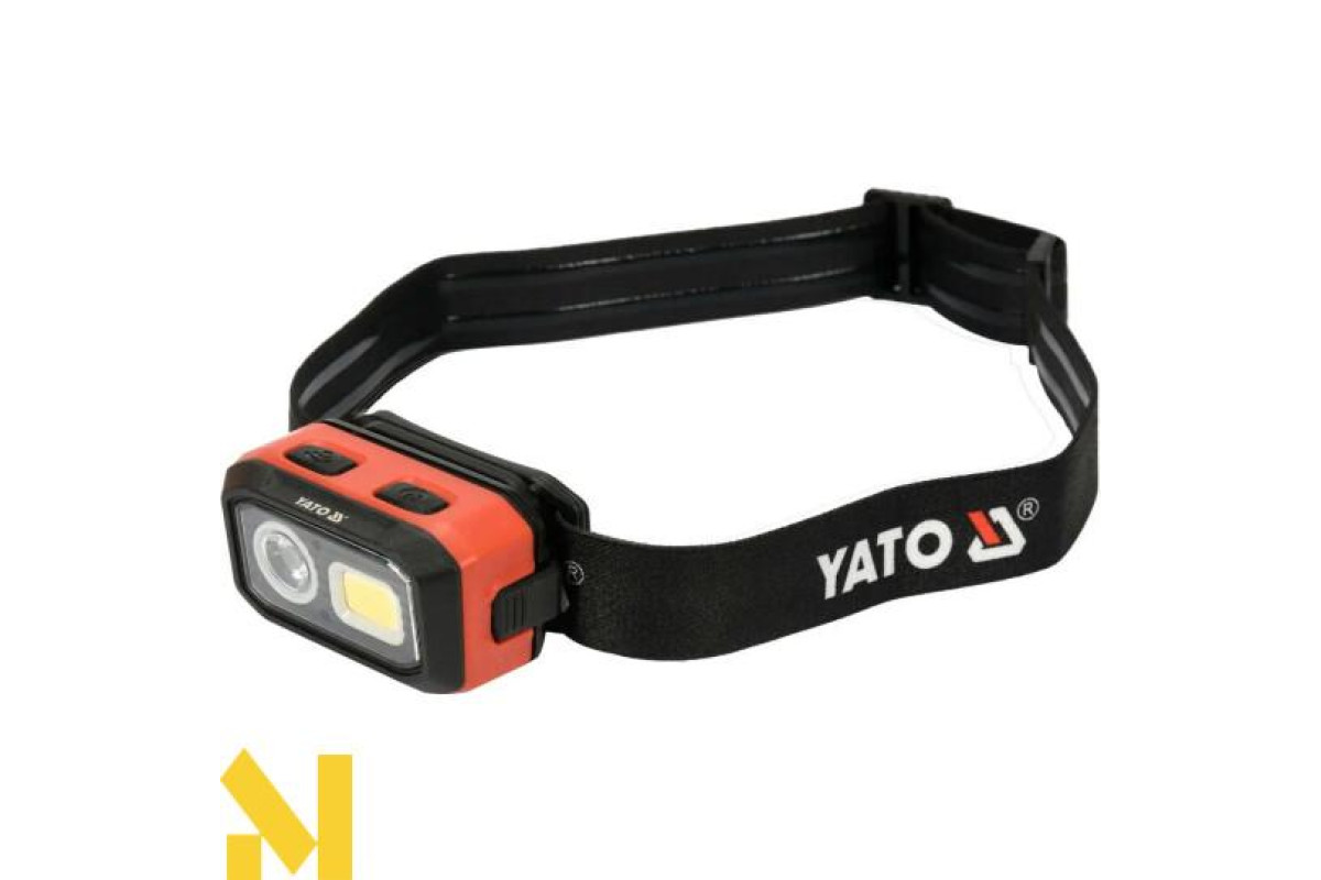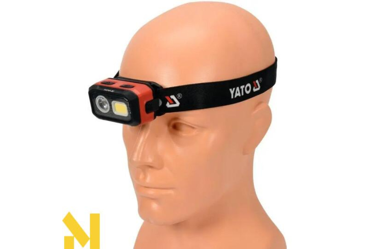Дуже міцний та функціональний налобний ліхтар Yato з плавним регулюванням світла до 500 лм.