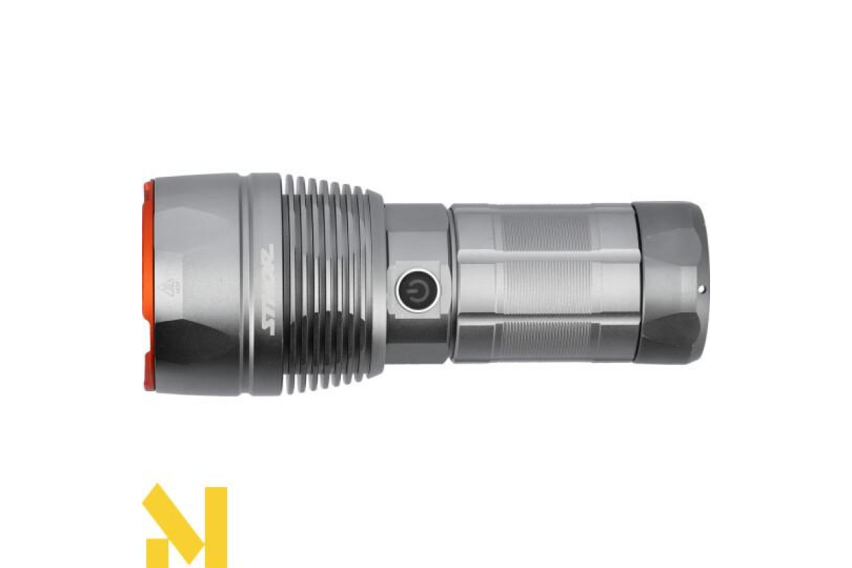 Міцний алюмінієвий ліхтарик з п'ятьма режимами роботи, які дозволяють регулювати освітлення під активність і рівень заряду акумулятора. Світлодіод COB потужністю 210 Вт випромінює світло до 14 000 лм, забезпечуючи час освітлення до 11 годин і радіус дії до 190 м.