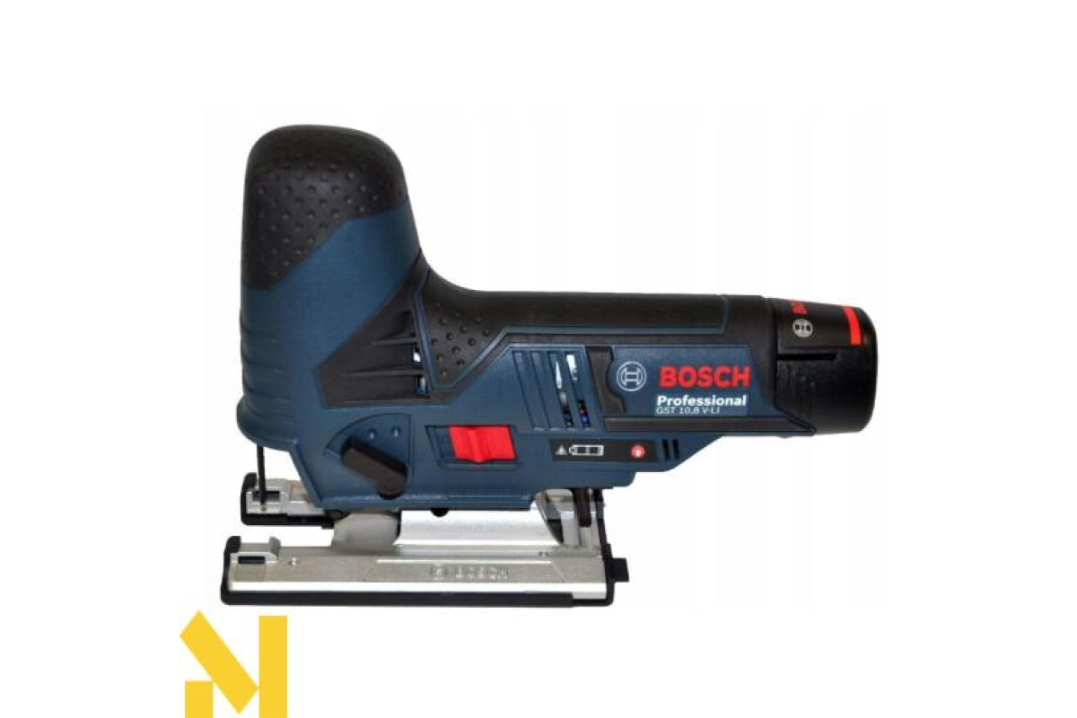 - Працюючий на літій-іонному акумуляторі 12 В (2,0 А*год), лобзик Bosch GST 12V-70 Professional призначений для поздовжніх і криволінійних розпилів деревини товщиною до 70 мм.
