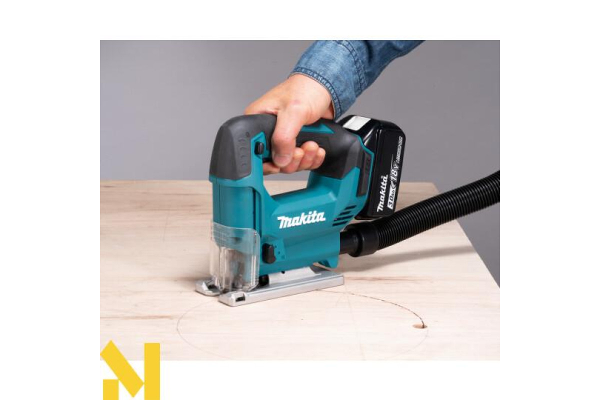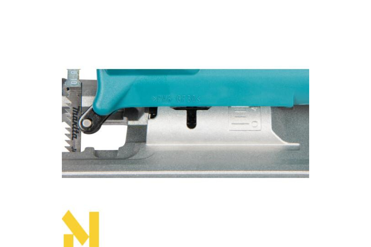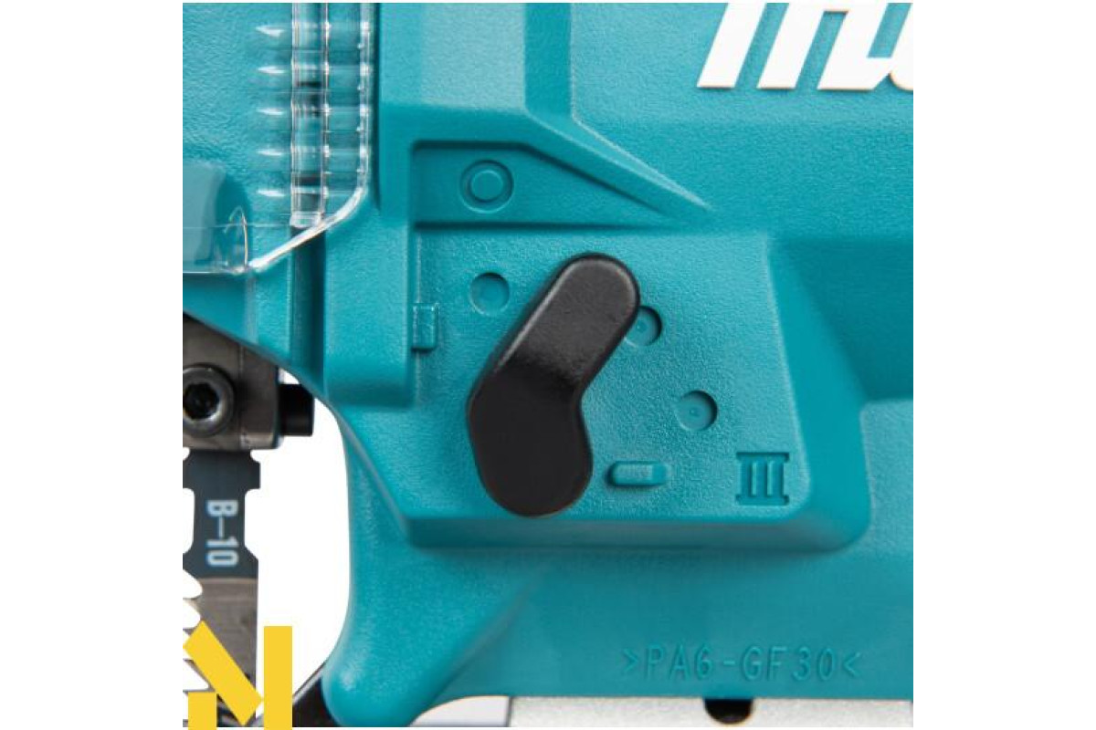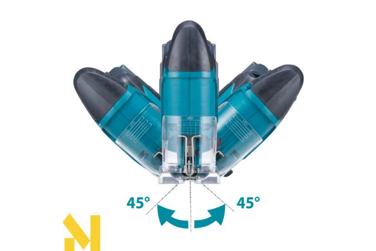 Частота ходу регулюється за допомогою курка. Фіксатор запобігає випадковому спрацьовуванню. Пристрій оснащений електричним гальмом, 3-ступінчастим регулюванням підрізання + прямим різом, а також системою здування стружки. Опорну плиту з литого під тиском алюмінію можна нахиляти на 45° в обох напрямках.