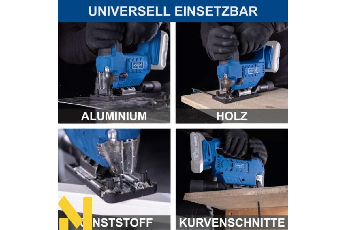Акумуляторний лобзик Scheppach C-JS220-X ідеально підходить для точних розрізів широкого спектру матеріалів, таких як дерево, метал, алюміній, латунь або пластик. Плавне регулювання швидкості від 0 до 2400 ходів за хвилину та 3-ступінчасте регулювання орбітального ходу забезпечують швидке розпилювання. Вбудоване світлодіодне робоче освітлення забезпечує оптимальне освітлення робочої зони. Як частина серії Scheppach IXES 20 вольт, усі акумулятори та зарядні пристрої системи можна комбінувати з лобзиком.