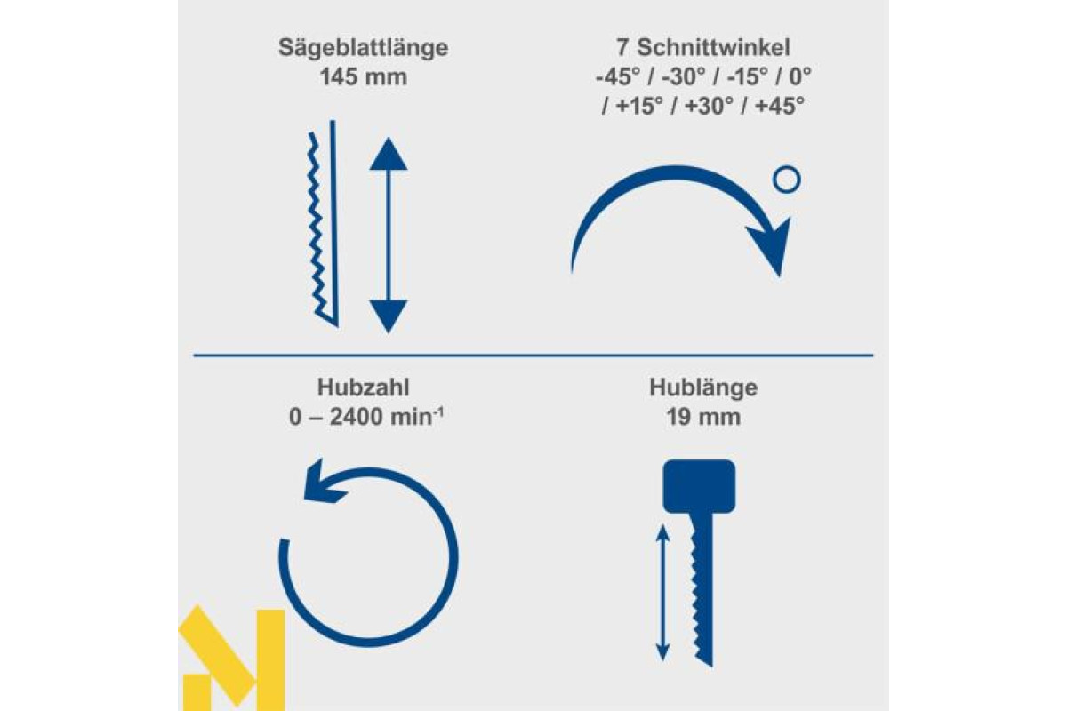 Акумуляторний лобзик для точного різання широкого спектру матеріалів, таких як дерево, метал, алюміній, латунь, пластик тощо (при використанні відповідного пильного полотна)