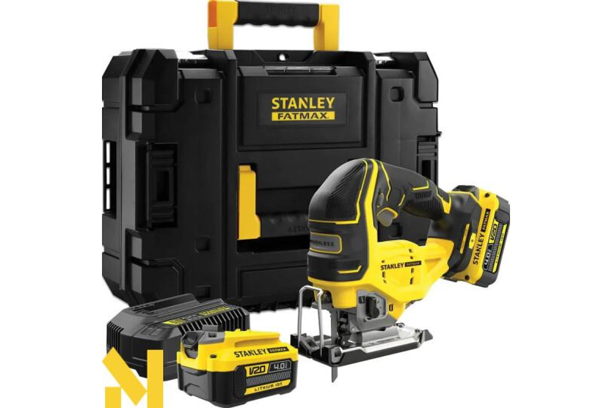 Акумуляторна лобзикова пилка 20 В МАХ з безщітковим двигуном в комплекті з двома акумуляторами Li-Ion / 20,0 В / 4,0 Аг і зарядним пристроєм у пластиковій валізі.
