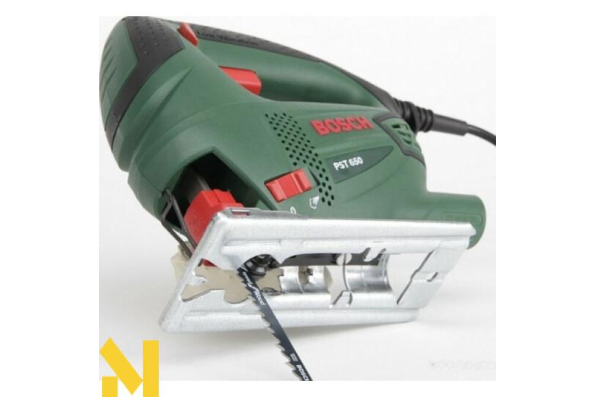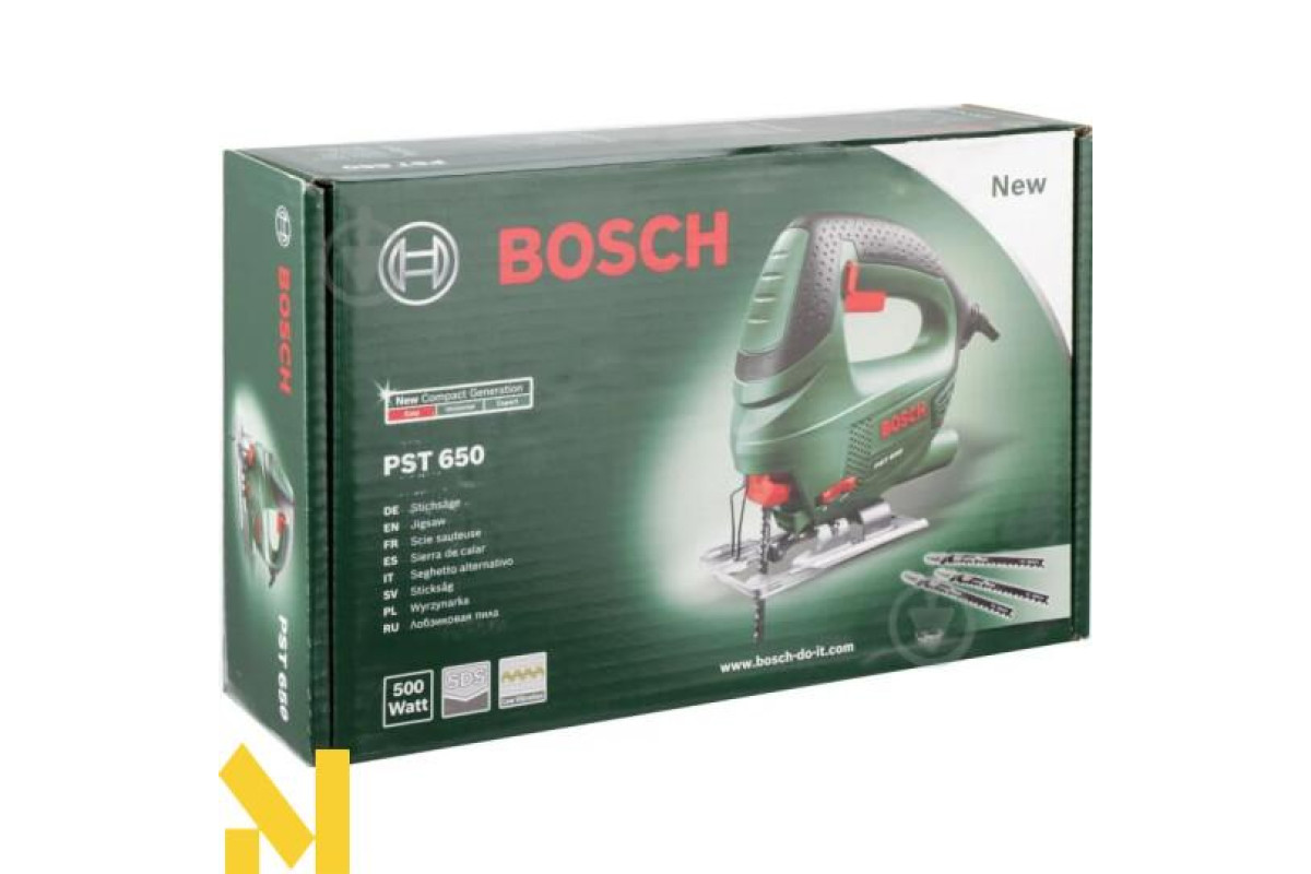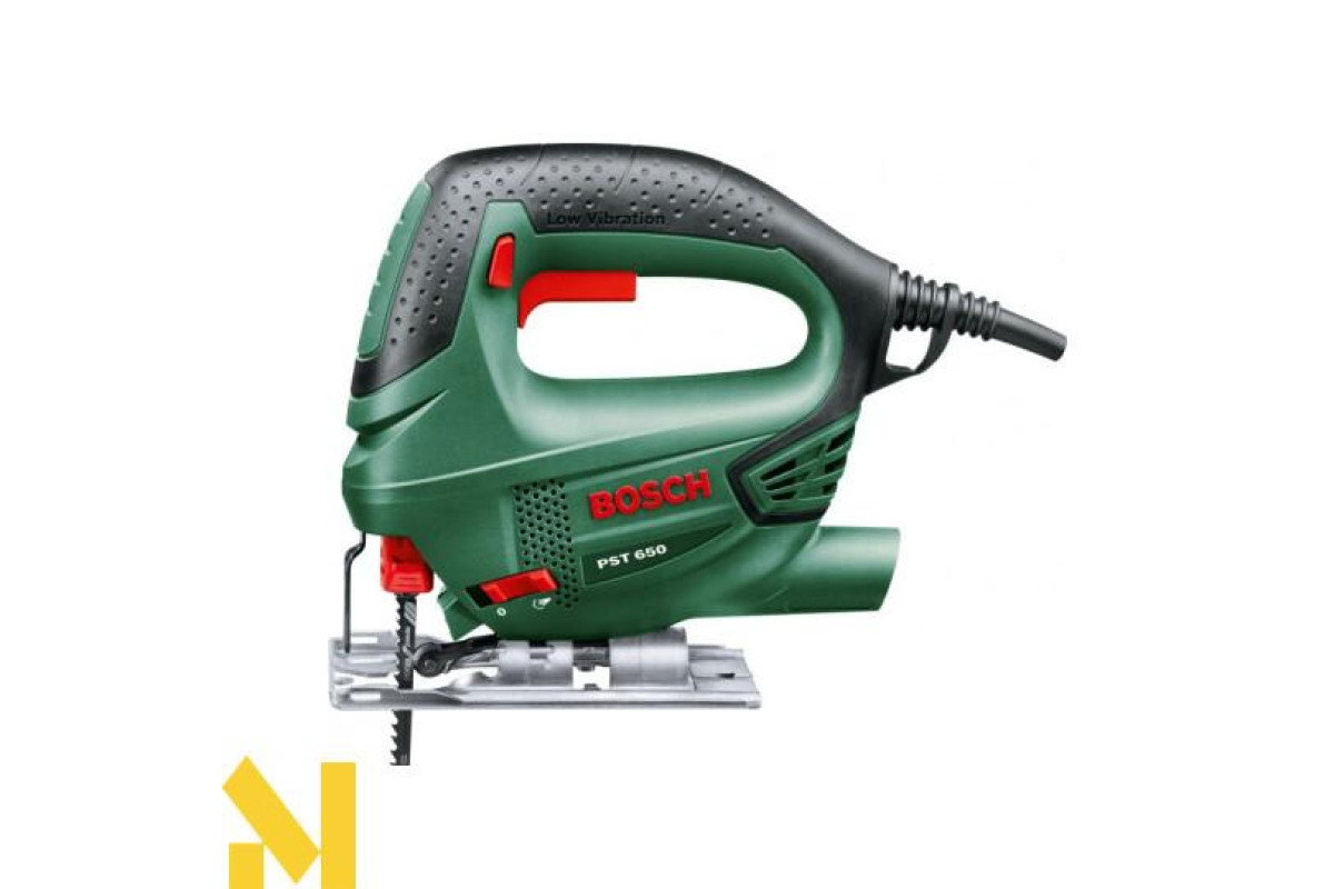Bosch PST 650 - це безмаятніковий електричний лобзик з ефективною фірмовою системою гасіння вібрацій Bosch Low Vibration та ергономічній D-подібною ручкою. Він застосовується для фігурного і прямого розпилу і розрізу різних матеріалів. До даної моделі можна підключати пилосос для чистої і акуратної роботи і хорошого огляду лінії розпилу. Легкий і компактний Bosch PST 650 зручний в експлуатації. Він оснащений механізмом бесьключевой зміни насадок, завдяки якій оператор зможе, не відволікаючись від процесу роботи, швидко і легко замінювати оснащення без використання додаткових інструментів. Рукоятка інструмента має гумову поверхню, яка запобігає вислизання і гасить вібрації. Підошва лобзика Bosch PST 650 виконана з штампованої сталі, що гарантує надійність і тривалий термін експлуатації. Опорний ролик в конструкції забезпечує точні пропили і запобігає перелом ріжучого інструменту. Особливості