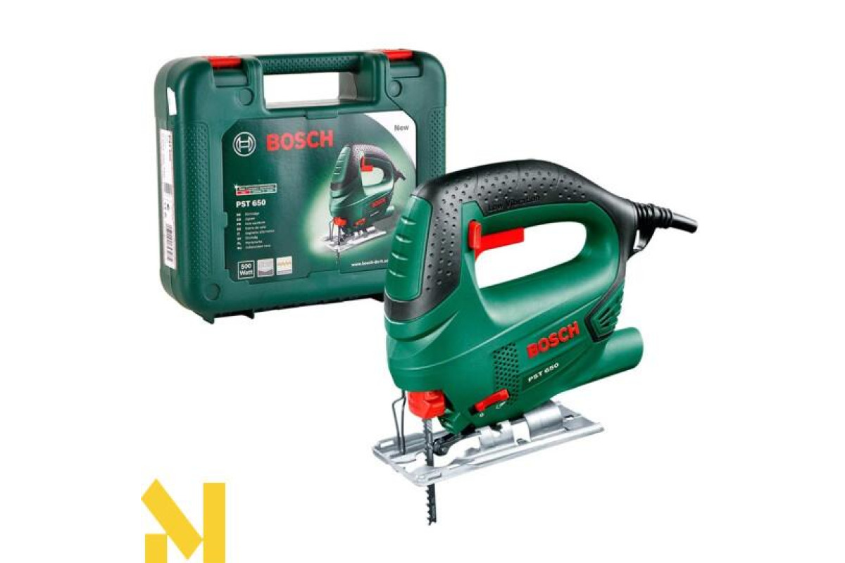 Електролобзик Bosch PST 650 призначений для різання деревини глибиною до 65 мм. Потужний і продуктивний двигун у 500 Вт здатний розрізати матеріал зі швидкістю 3100 хід/хв. Регулювання нахилу опорної поверхні до 45°. Вага 1,6 кг. Функція здування тирси або підключення пилососа. Особливість цієї комплектації - пластиковий кейс для зберігання і транспортування, пиляльне полотно T 144 D.