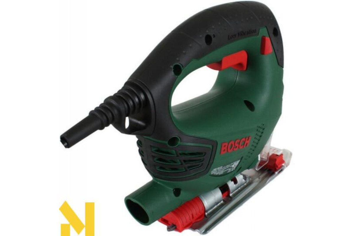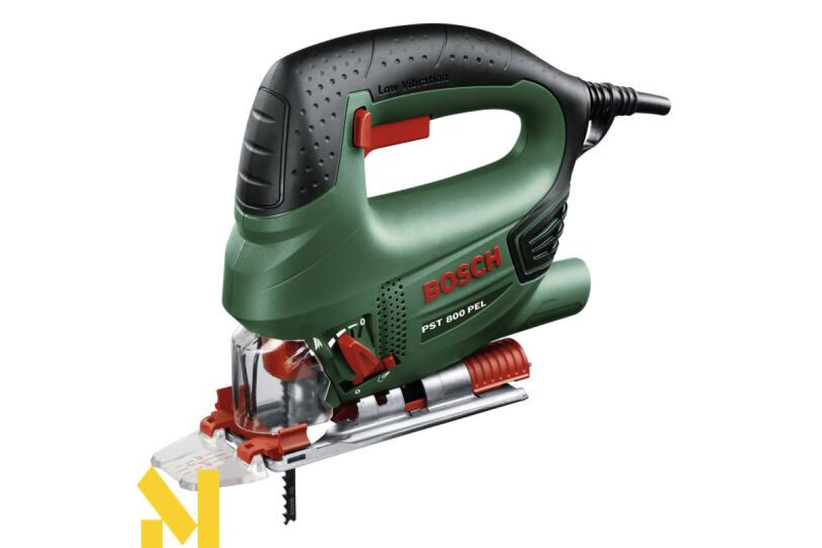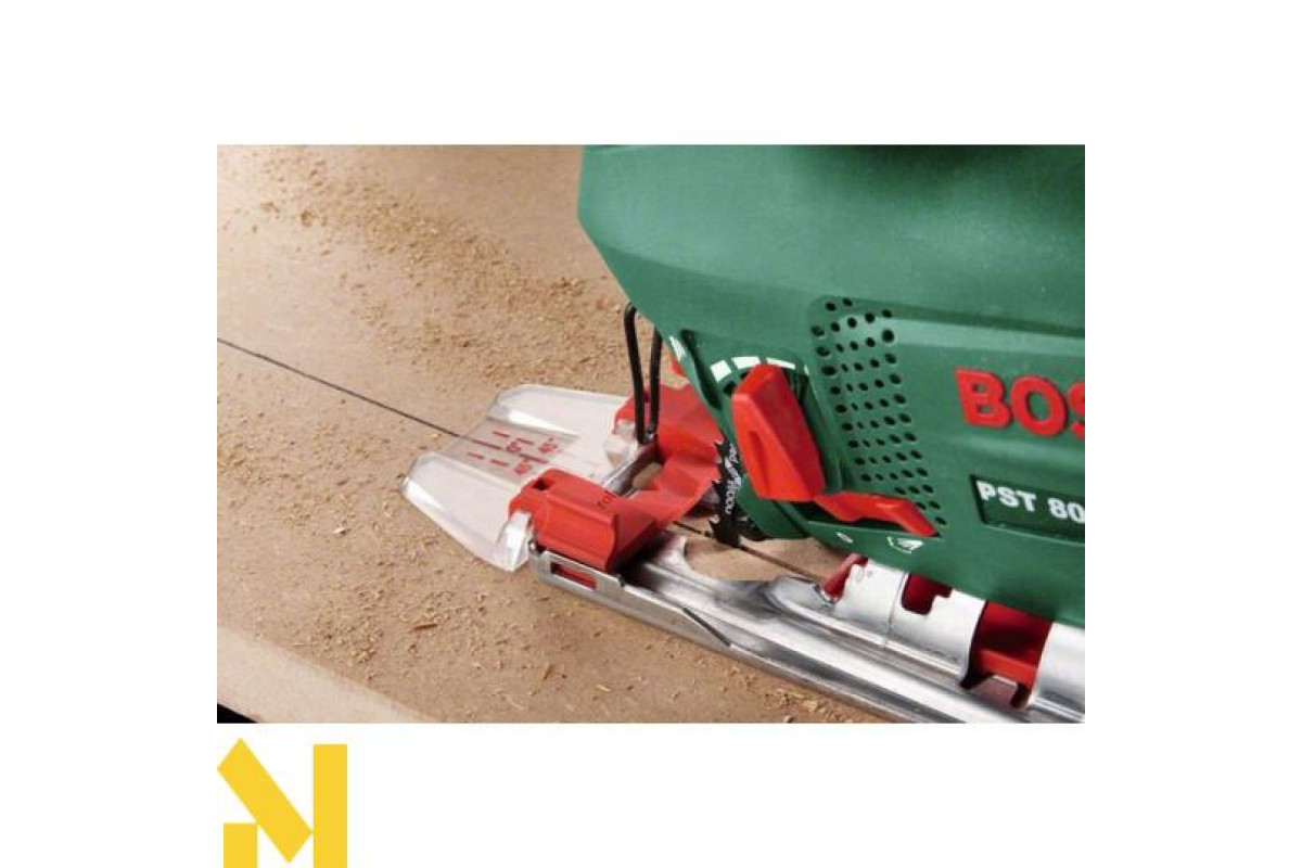 Лобзик Bosch PST 800 PEL призначений для різання дерева, метала, пластмаси. Це досить універсальний і продуктивний пристрій, який допоможе вирішити чимало поставлених завдань під час ремонтних, будівельних робіт та обробки дерева. Попри невеликі габарити - це доволі продуктивна техніка. Електроінструмент обладнаний двигуном потужністю 530 Вт, який видає 500-3000 об/хв. Наявність системи Bosch Electronic дозволяє за допомогою кнопки регулювати частоту ходів пилки. Завдяки чотирьохступінчастому маятниковому ходу пришвидшується розпил. Таким чином полотно менше зношується і поліпшується точність роботи. А система «Cut Control» дає змогу без проблем контролювати лінію розпилу. Також слід звернути увагу на особливу технологію зменшення вібрації «Low Vibration» з лінійним балансуванням. Це сприяє зручності і комфорту. Лобзик Bosch PST 800 PEL розпилює деревину завтовшки 80 міліметрів, алюміній до 12 мм товщини і сталь до 5 мм. За рахунок наявності системи SDS полотна змінюються швидко і без використання додаткових інструментів. Варто відзначити, що в конструкції є відсік, де можна зберігати 6 пильних полотен. У корпусі передбачено вихід для підключення пилососа, що дозволяє постійно тримати робоче місце у чистоті.