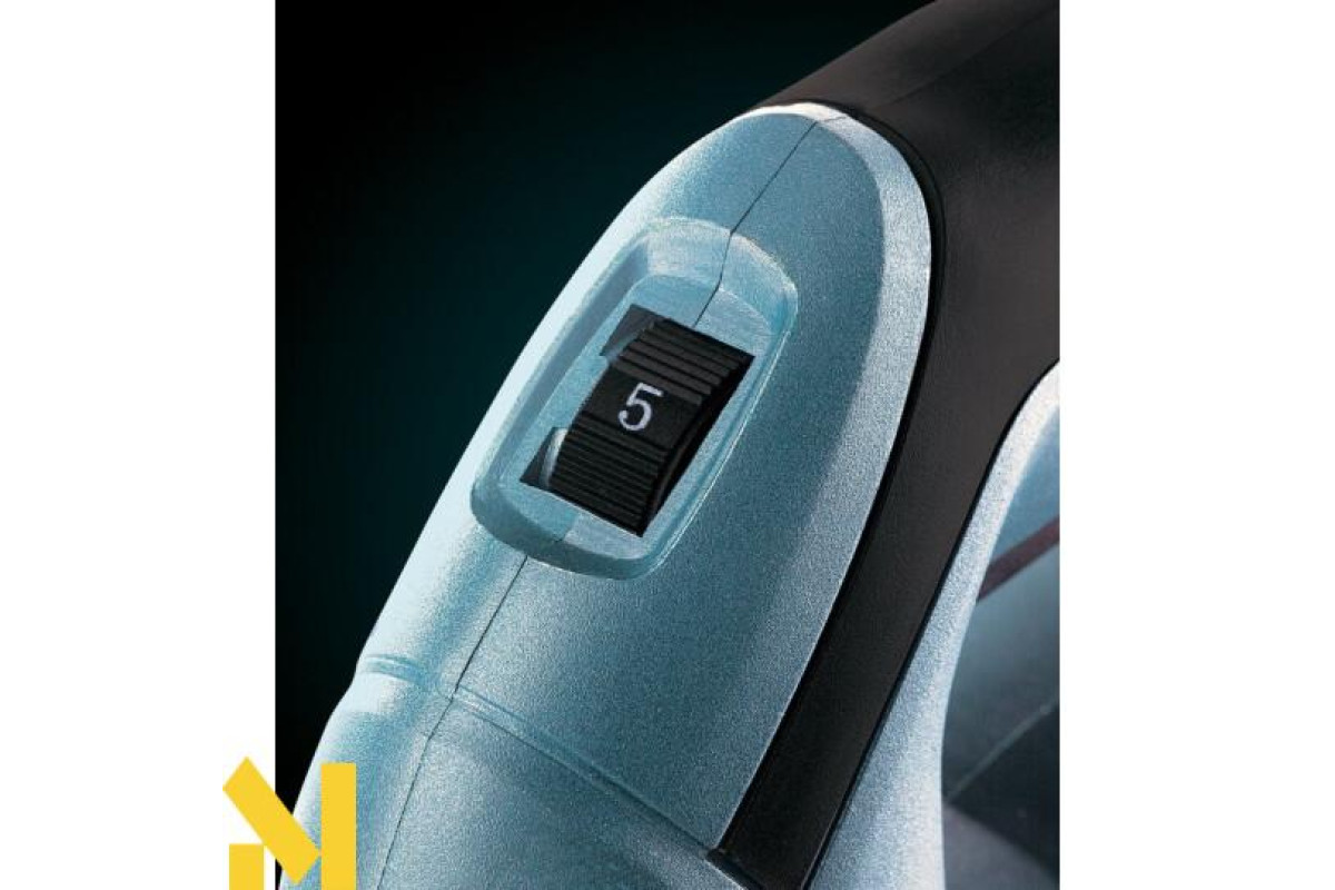 - Особливості: безключева заміна пилки/лазерний покажчик лінії пропилу/маятниковий хід/підключення пилососа/пропил під кутом/регулювання оборотів/система здування тирси