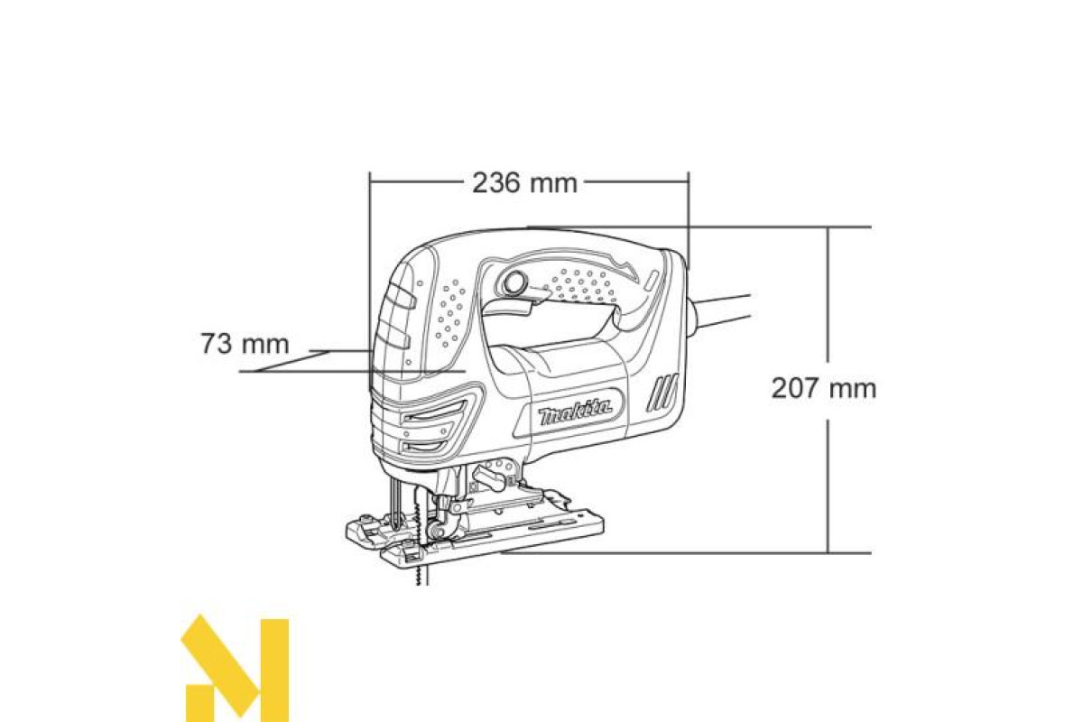 Електролобзик ще характеризується наявністю обмежувача пускового струму, електронної системи стабілізації та патрубка для відводу пилу. Варто зазначити, що корпус цієї моделі виготовлений з міцного протиударного пластику. А прогумовані накладки на ручці не дають інструменту висковзнути з рук.