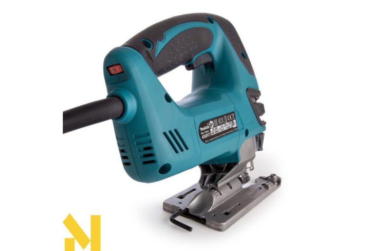 Лобзик Makita 4350FCT призначений для швидкого, гладкого і акуратного розпилювання професійного рівня. Ергономічна D-подібна рукоятка забезпечує більший контроль над інструментом і зручність в роботі. Низький рівень шуму і вібрації досягається шляхом руху штока і системи противаги в протилежних напрямках. Підстава може нахилятися вправо і вліво на 45°. Дана модель оснащена системою світлодіодного підсвічування, яка дозволяє комфортно працювати в умовах недостатнього освітлення без застосування ліхтаря.