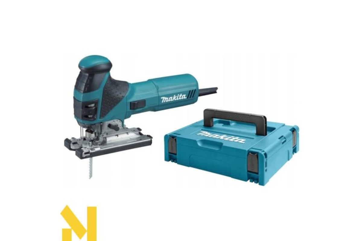 Апарат володіє трьома напрямками обрізки плюс прямим різом. Алюмінієва плита регулюється з обох сторін на 45 °. Леза лобзика змінювати досить просто, при цьому не залучаючи додаткових засобів. Також можна підключати пилосос для видалення пилу з робочої зони. Ще варто зазначити, що ця модель поставляється у міцному кейсі MAKPAC.