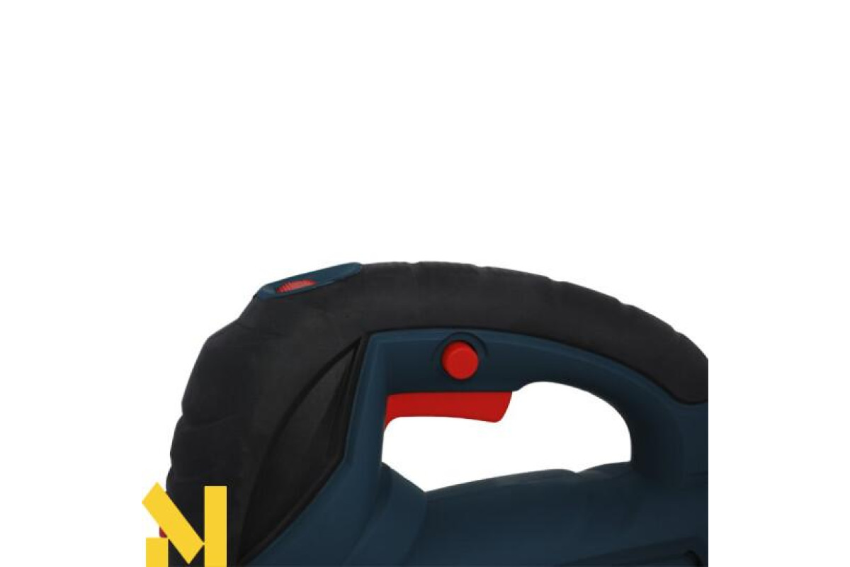 У інструмент вбудований лазерний покажчик лінії розпилу для зручності застосування. Підошва пристрої легко регулюється для похилого розпилу, а уніфікований патрон гарантує фіксацію полотна і швидку його заміну. На задній частині лобзика розташований штуцер для підключення пилососа або інших пристроїв пиловидалення.