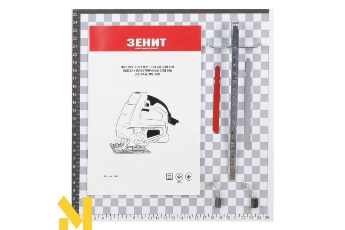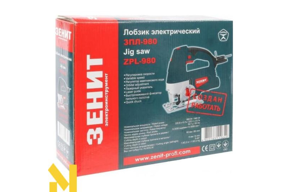 пакувальна коробкаЛобзик електричний ЗПП 980 торгової марки - ЗЕНІТ ЕЛЕКТРОІНСТРУМЕНТ поєднують в собі сучасні конструктивні рішення для збільшення ресурсу роботи, продуктивності і надійності інструменту, а також для його безпечного використання. Ми впевнені, що продукція торгової марки ЗЕНІТ ЕЛЕКТРОІНСТРУМЕНТ буде Вашим помічником на довгі роки.