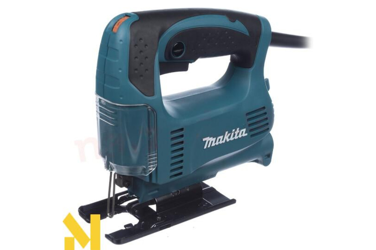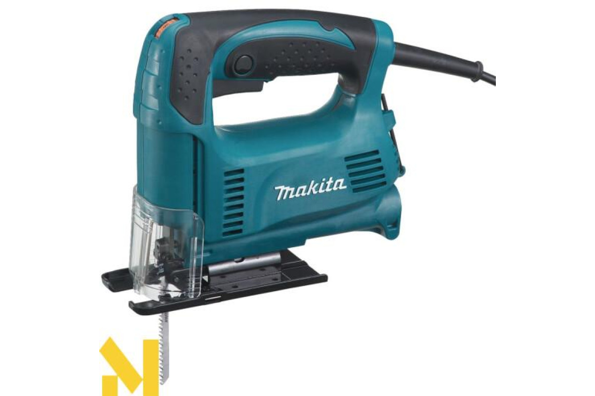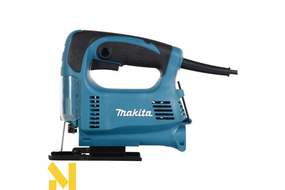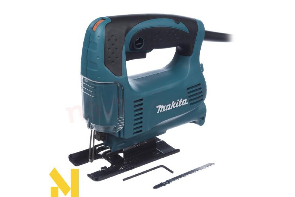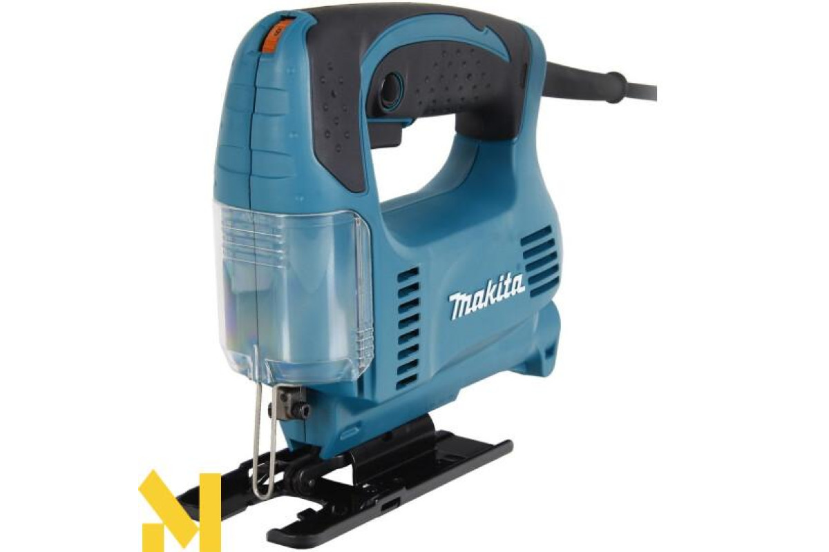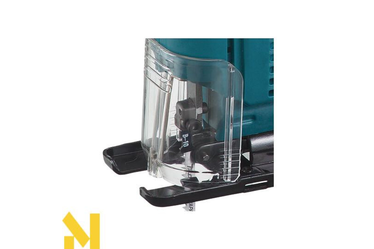 Характеризується електроінструмент висотою ходу в 18 мм, при показниках на холостих обертах 500-3100 об/хв. Рекомендується для ефективної роботи з різними матеріалами, встановлювати максимальну швидкість пиляння. До речі, число обертів при роботі буде контролюватися електронікою. А за рахунок системи обмеженого пуску струму, буде відбуватися плавне зростання обертів, що в свою чергу продовжить термін експлуатації. Крім того завдяки рухомій опорній плиті, можна робити косі рези з кутом нахилу в обидва боки на 45°. Також лобзик без проблем працює біля самої кромки, оскільки у плити є можливість зміщуватися назад. Перевагою цієї моделі є невелика вібрація і малошумність. Це забезпечив врівноважуючий механізм. Варто відзначити, що прилад оснащений ергономічною ручкою, яка не дає йому вислизати з рук. При цьому пусковий вмикач розташований на рукоятці, що досить зручно. До того ж він має функцію фіксації для безперервної роботи. Слід зазначити, що техніку можна підключати до пилососа, а прозора пилезахисна кришка не дозволяє тирсі розкидатися і не закриває лінію розпилу.
