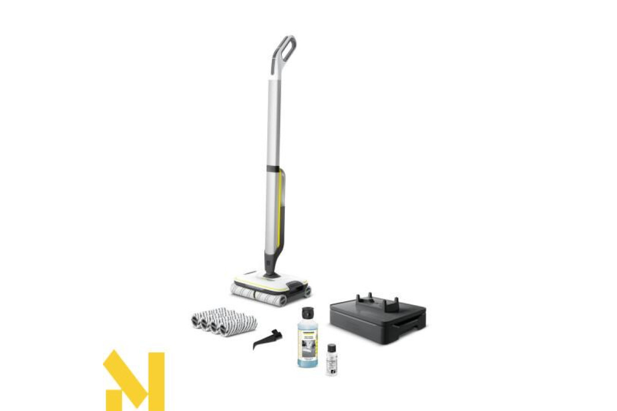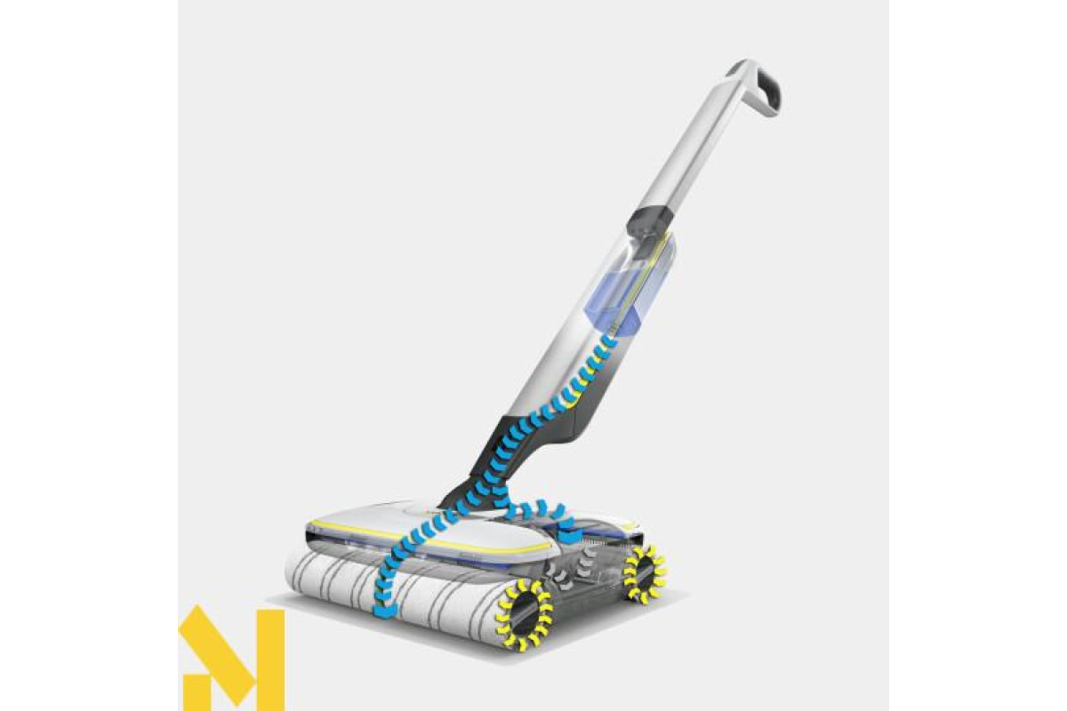 У комплект поставки входять універсальний засіб для чищення (500 мл), засіб для чищення каменю (30 мл) і додатковий комплект роликів для кам'яних підлог, що дозволяє відразу ж провести генеральне прибирання у всій квартирі. Одного заряду потужного акумулятора досить для 45 хвилин роботи апарату, що відповідає прибирання до 135 м² твердих підлогових покриттів. У темних кутках і нішах світлодіодне підсвічування настільки добре висвітлює простір, що ніякий бруд не залишається непоміченою. Витрата води та швидкість обертання автоматично зволожуваних роликових щіток можна регулювати (передбачені 2 режиму прибирання), а окремі бачки для чистої і брудної води виключають необхідність носити відра з водою.