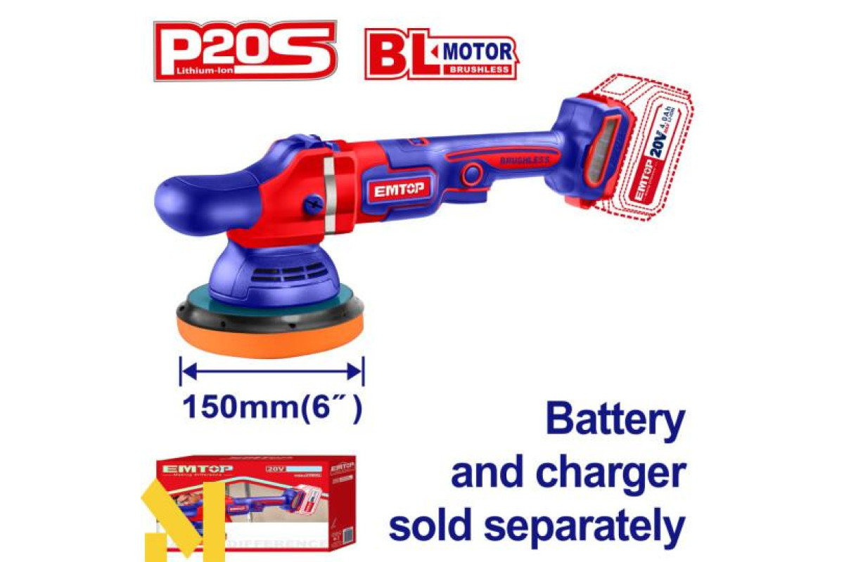 Акумуляторне живлення для зручності та мобільності: Полірувальна машина Emtop ELAP2015 працює на акумуляторах, що дозволяє вам працювати без прив'язки до джерела електрики. Це забезпечує вільний доступ до будь-яких важкодоступних місць і можливість працювати в умовах обмеженого простору, де немає можливості підключити інструмент до мережі.