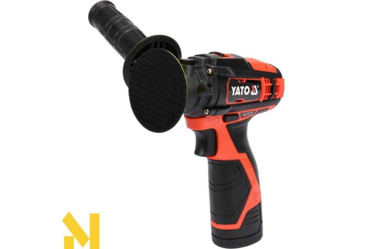 У комплекті: 2 Ач акумулятор YT-82909, 1-годинний зарядний пристрій і три додаткових шліфувальних кола різної твердості (для воску і пасти).