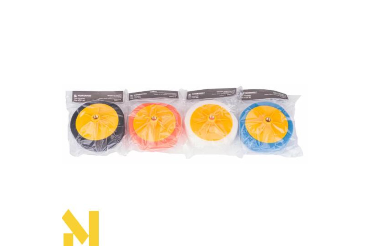 4 полірувальні круги 150 мм / 45 мм (чорний - жорсткий; помаранчевий - середньої жорсткості; білий - середньої м'якості; синій - м'який)