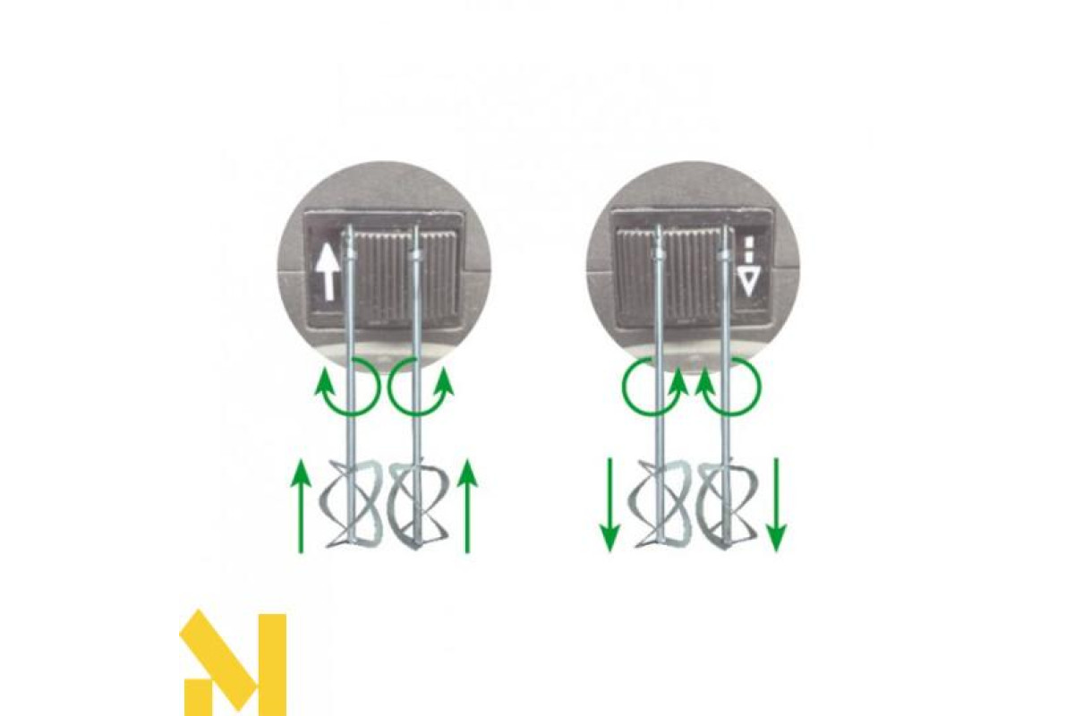 Змішування за годинниковою стрілкою високов'язких та твердих матеріалів, напр. плитковий цемент, готові розчини та штукатурки, стяжки, епоксидні смоли, герметики, гранули, багатокомпонентні матеріали, покриття