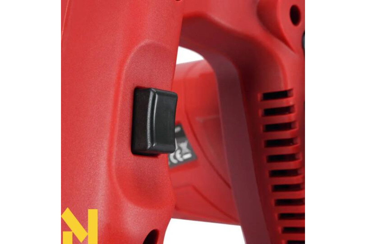 Пристрій також містить електронний регулятор швидкості та кнопку блокування.
