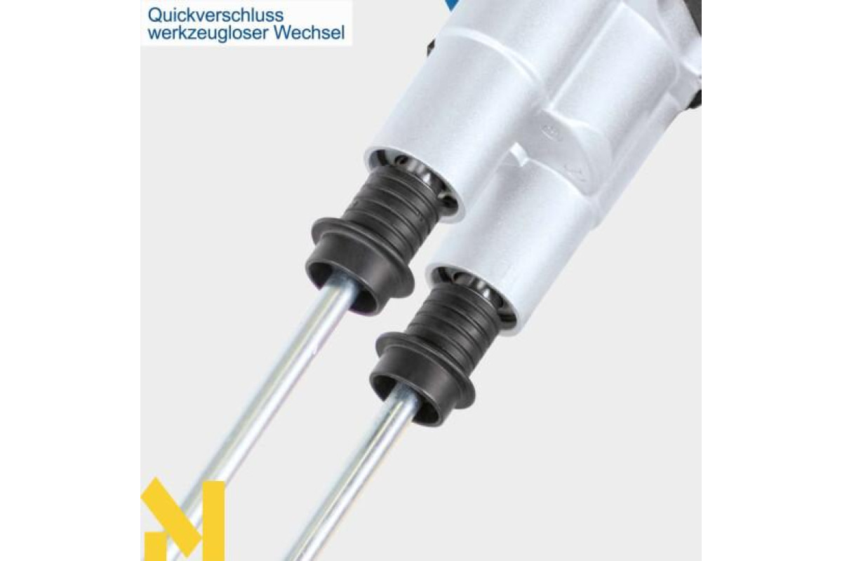 Міксер PM1800D оснащений системою швидкої заміни для легкого встановлення та заміни змішувальних стрижнів. Змішувальний стрижень кріпиться до змішувача за два простих кроки – без складного закручування. Це гарантує, що змішувальні стрижні завжди надійно закріплені, але їх можна швидко та легко замінити або зняти.