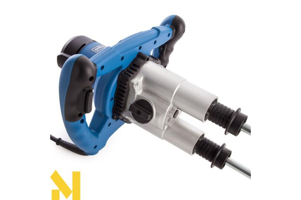 Scheppach PM1800D з двома вінчиками та потужним двигуном 1800 Вт пропонує величезну потужність, залишаючись при цьому простим в експлуатації – ідеально підходить для змішування як твердих матеріалів, так і рідких і порошкоподібних матеріалів, таких як фарби, розчин і бетон. Мішалки, що обертаються в протилежних напрямках, забезпечують стабільні результати змішування.