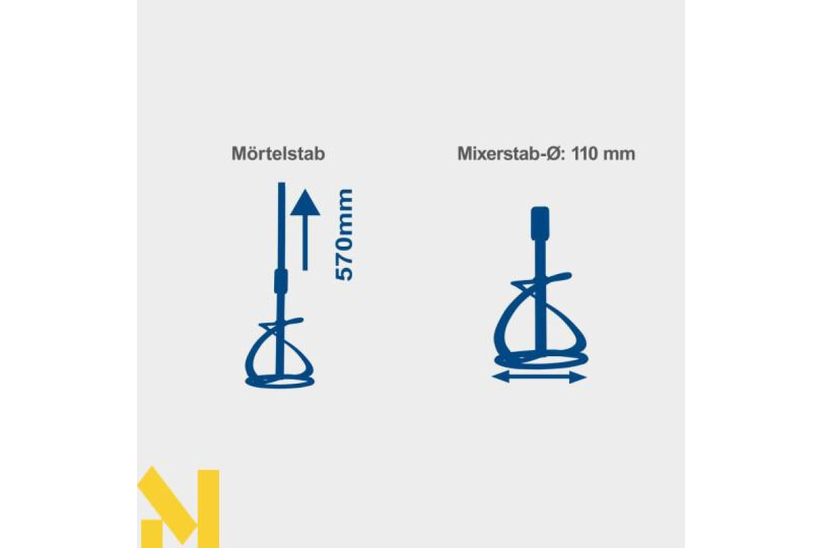 Ручний міксер оснащений двома спіральними змішувальними штангами, кожна діаметром 110 мм і довжиною 570 мм. Довжина змішувальних штанг дозволяє займати більш вертикальне положення під час використання розчинозмішувача, що робить роботу комфортнішою та захищає вашу спину. Завдяки цьому розчинозмішувач PM1800D ідеально підходить для ремонту будинків.