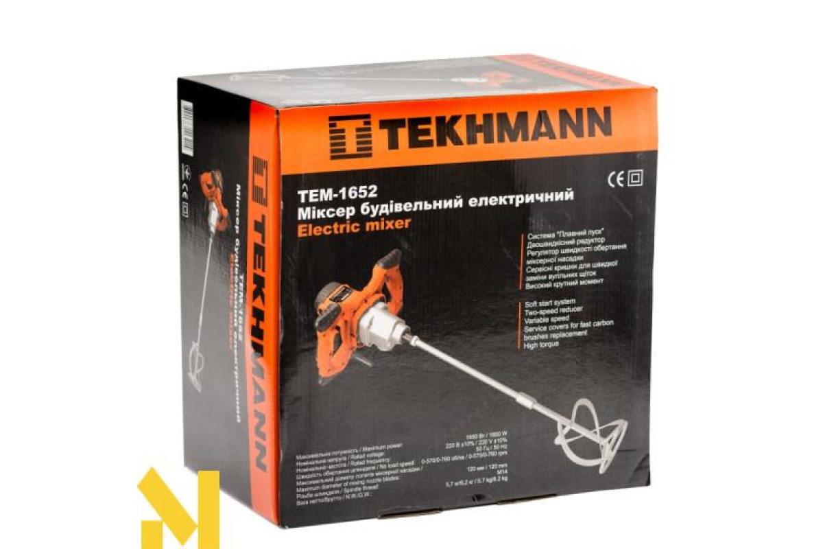 Будівельний міксер Tekhmann TEM-1652 незамінний як в побуті, так і в професійних умовах. Інструмент працює від звичайної мережі 220В, його основним призначенням є допомога в перемішуванні рідких складів для клеєння шпалер, штукатурки, цементу, фарби, іншого.