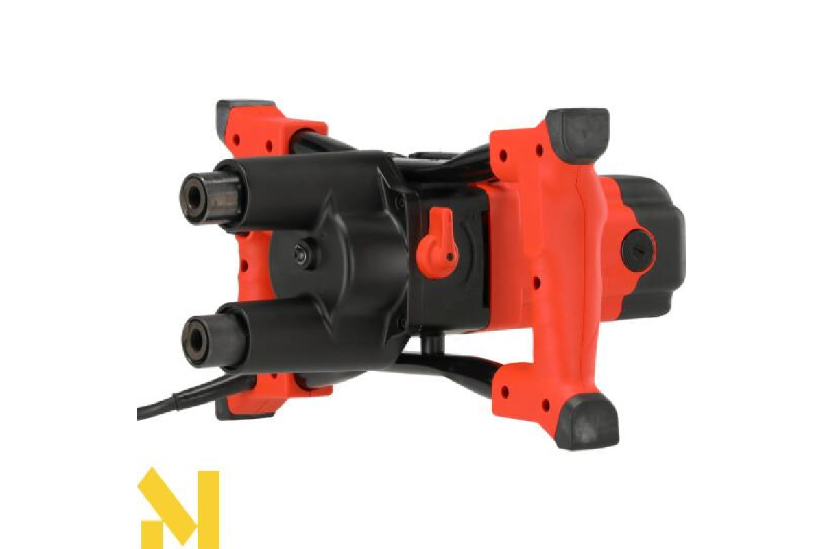 Подвійний будівельний змішувач з двома передачами дозволяє швидко та ретельно змішувати гіпсові та цементні розчини, самовирівнювальні стяжки, фарби, клеї, епоксидні смоли та інші рідкі будівельні маси, і навіть стяжку або бетон, оптимально з розміром зерна 0-6 мм.