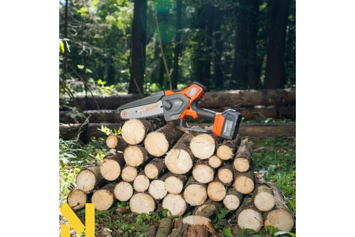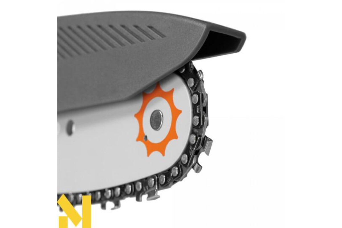 Двостороння шина довжиною 20 см у поєднанні з 48-ланковим ланцюгом із кроком 1/4 дюйма забезпечує швидкий і чистий розпил сухої та свіжої деревини.