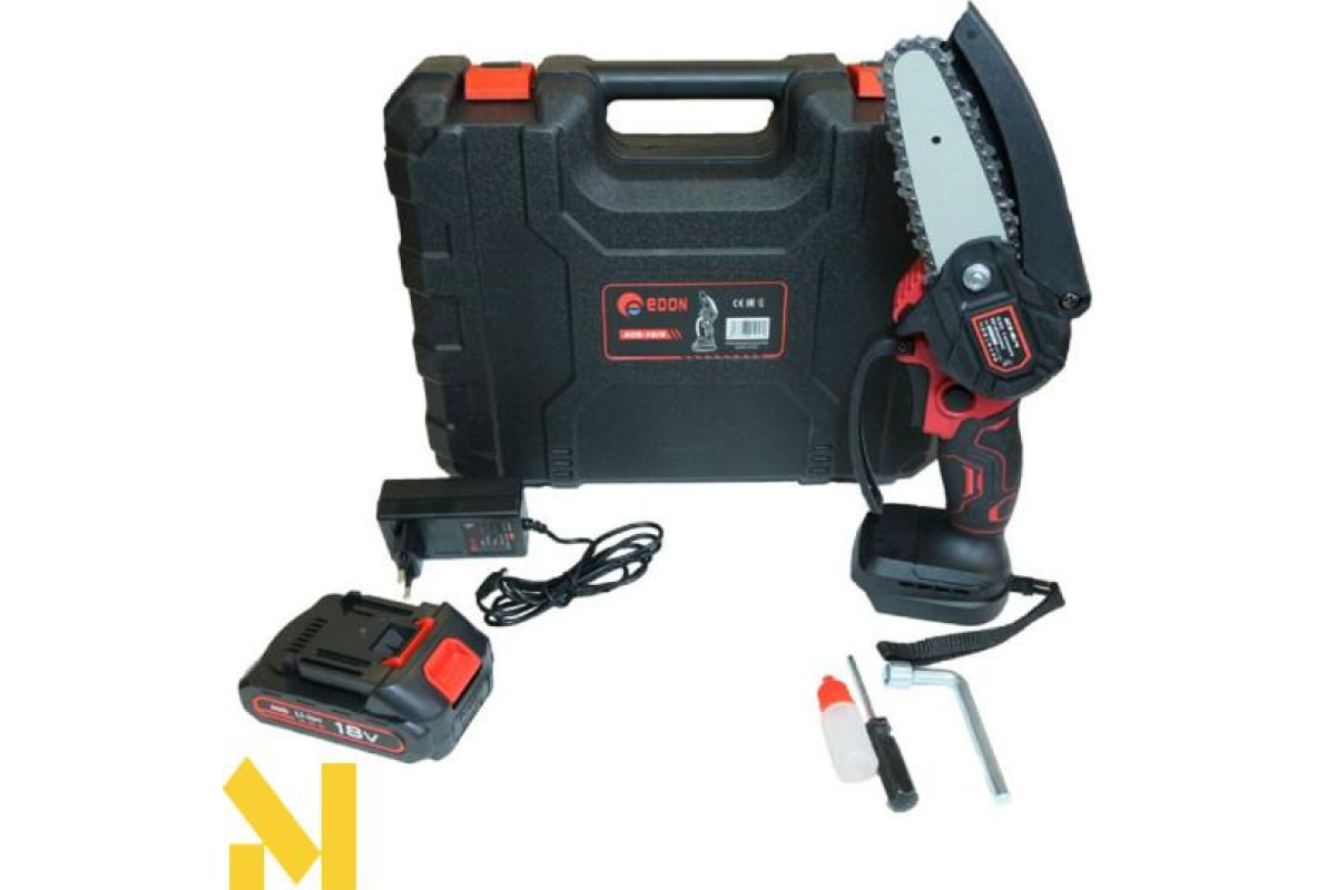 Акумуляторна міні-пилка ланцюгова Edon ACS-18/4 – інструмент для прямолінійних, занурювальних та криволінійних пропилів. Ідеальний для використання як лобзик та садова пилка (обрізання гілок, зріз заподлицо). Вперше в інструменті подібного класу реалізовано принцип ланцюгової пилки – завдяки чому пиляння стало менш вібраційним, тихим та легким у порівнянні з традиційними лобзиками та ножівками.