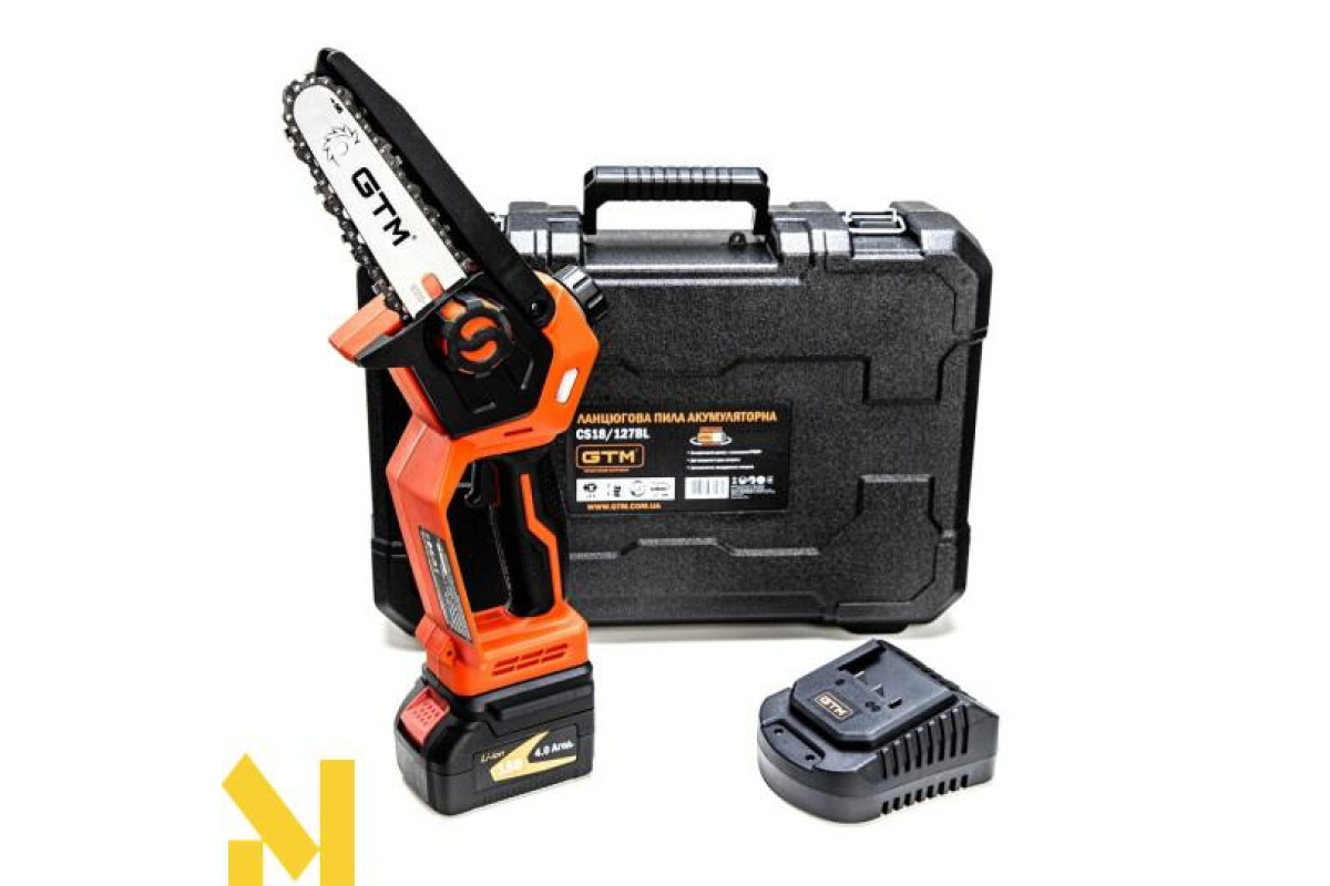GTM CS18/127BL - компактна та потужна акумуляторна ланцюгова пила професійного класу, яку розробили для обрізки дерев і кущів, а також садово-паркових робіт. Інструмент обладнаний безщітковим електричним двигуном, який живиться від стандартних акумуляторів GTM 18 В. Пила комплектується шиною довжиною 12.7 см і фірмовим ланцюгом.