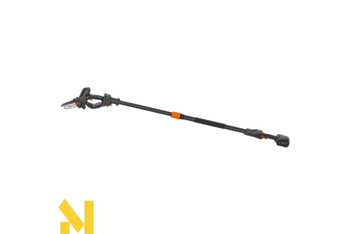 Компактний ручний акумуляторний гілкоріз призначено для обрізання дерев, зрізання садового сміття та невеликих столярних робіт. Створений на основі нашого перевіреного досвіду роботи з бензопилами, ця універсальна міні-пила досить потужна, щоб легко зрізати гілки в діаметрі до 75 мм. Оснащений ланцюгом та шиною з заміною без використання інструментів, а також покращена безпека завдяки ручці зпоериттям проти ковзання та автоматичному вимкненню, якщо залишити без нагляду. Завдяки своїй компактній та легкій конструкції його легко використовувати з телескопічною ручкою (постачається в комплекті), яка збільшує радіус дії до 3 метрів під час обрізання гілок. Зберігання стає зручнішим за допомогою гачка, що входить у комплект. Частина акумуляторної системи 18 В POWER FOR ALL. Олива для змащування ланцюга входить до комплекту (50 мл).
