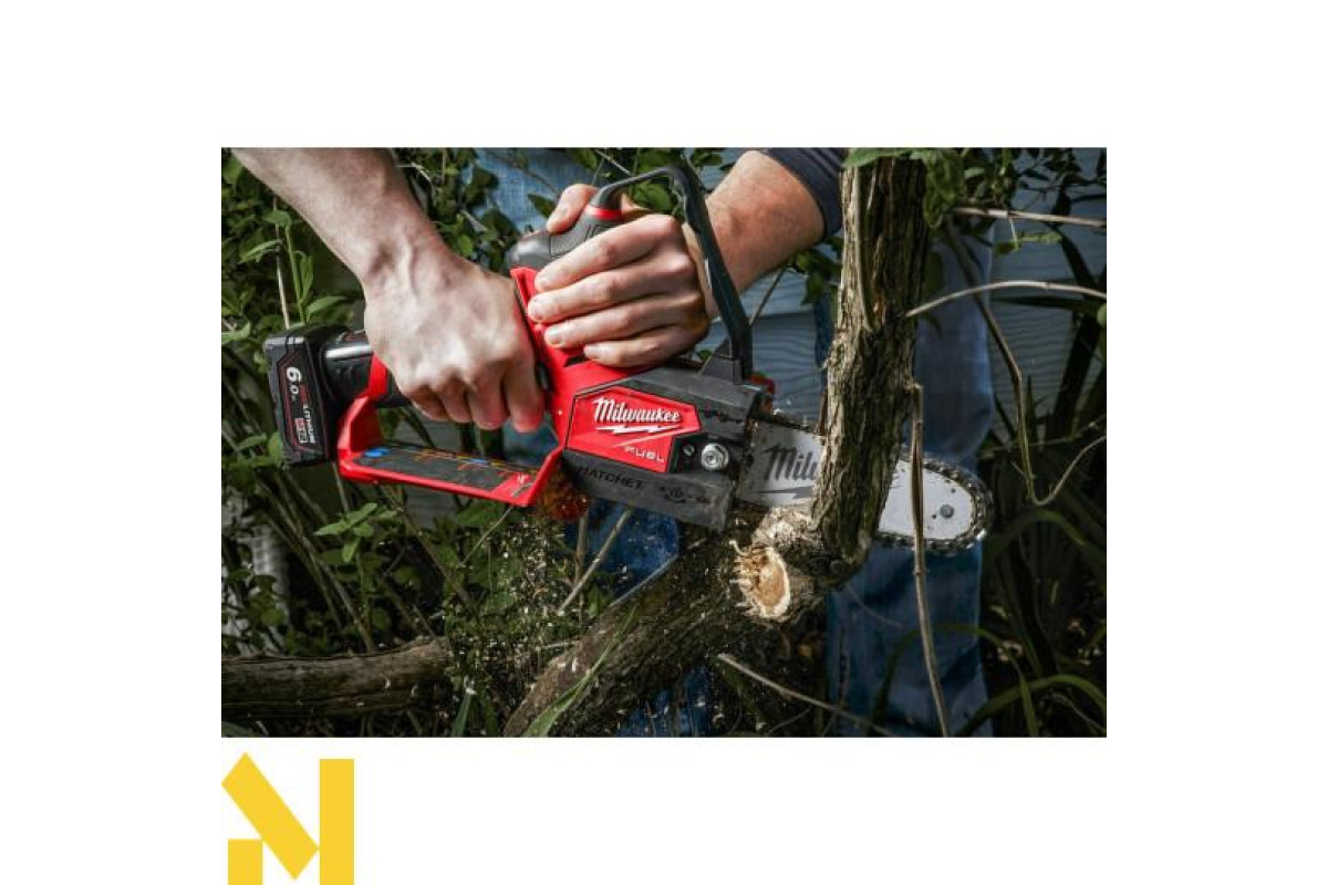 M12 FUEL™ HATCHET™ ланцюгова садова пилка забезпечує чудовий контроль та доступність. Пила може різати брус 75 мм з твердих порід деревини та забезпечує до 120 різів на одному заряді акумулятора M12 B4