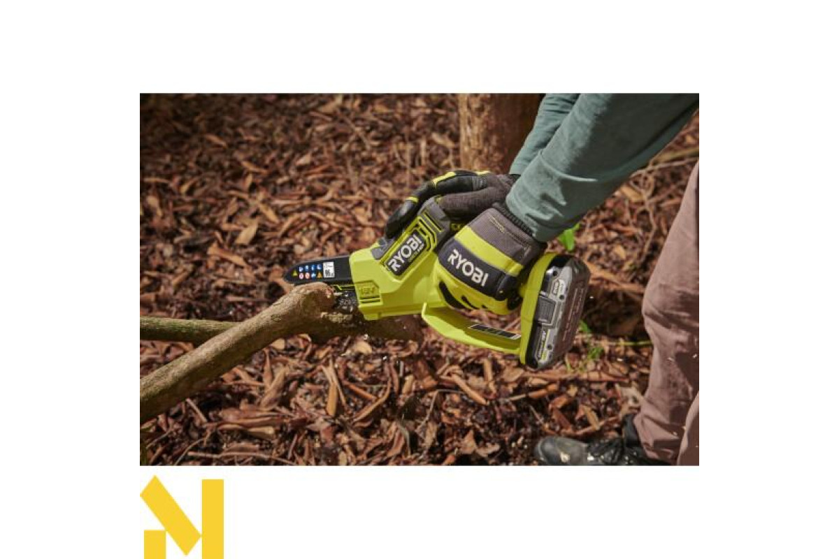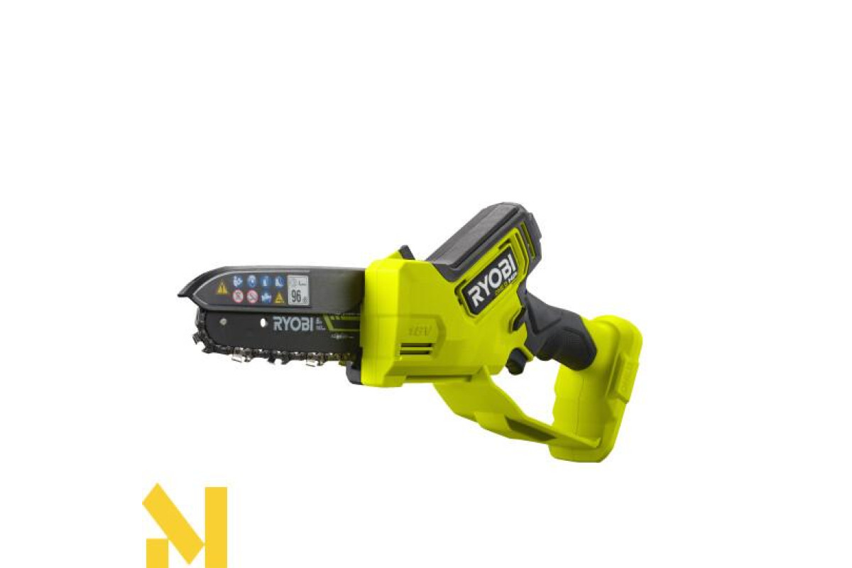 Пила цепная аккумуляторная Ryobi RY18PSX15A-0 - це бездротовий інструмент, що працює від літій-іонного акумулятора. Вона призначена для різання деревини та дерев'яних матеріалів і може використовуватися як для домашнього, так і для професійного використання. Вбудована система захисту від перевантажень та блокування ланцюга забезпечує безпеку використання та тривалу експлуатацію пилки.