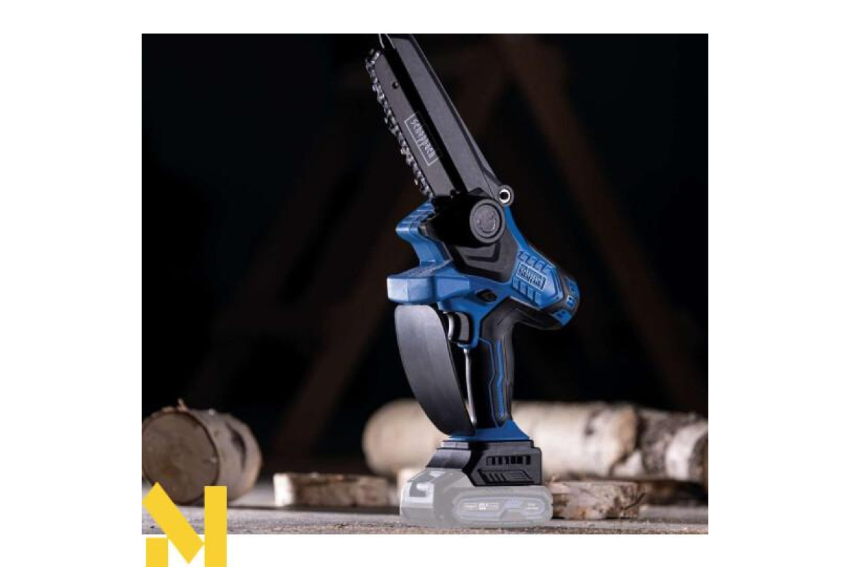 Акумуляторна міні-пила для обрізки дерев, кущів та подрібнення зелених живців Scheppach BC-PS150-X – це потужний інструмент, призначений для обрізки дерев, кущів та рубання зелених живців. Завдяки довжині різання 150 мм та швидкості різання 6,8 м/с вона легко справляється з товстішими гілками та густим листям. Безщітковий двигун забезпечує високу ефективність, довший час роботи та менший знос, що робить його надійним інструментом як для домашнього, так і для професійного використання.