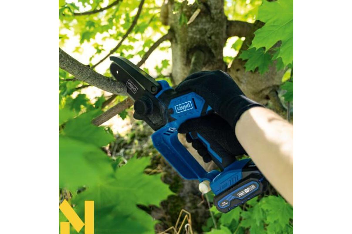 Компактна та легка акумуляторна обрізна пилка для обрізки дерев та кущів, а також подрібнення зелених відходів.