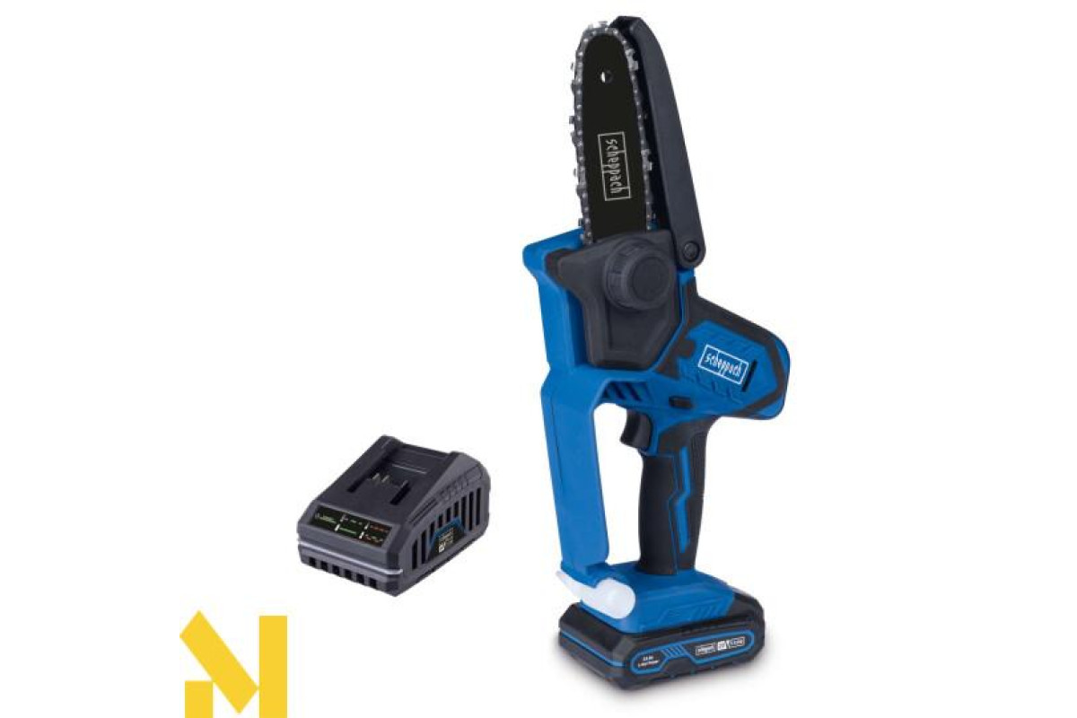 Бездротова робота з Scheppach IXES серії 20 вольт – усі акумулятори та зарядні пристрої з системної серії можна комбінувати з акумуляторною обрізною пилкою.