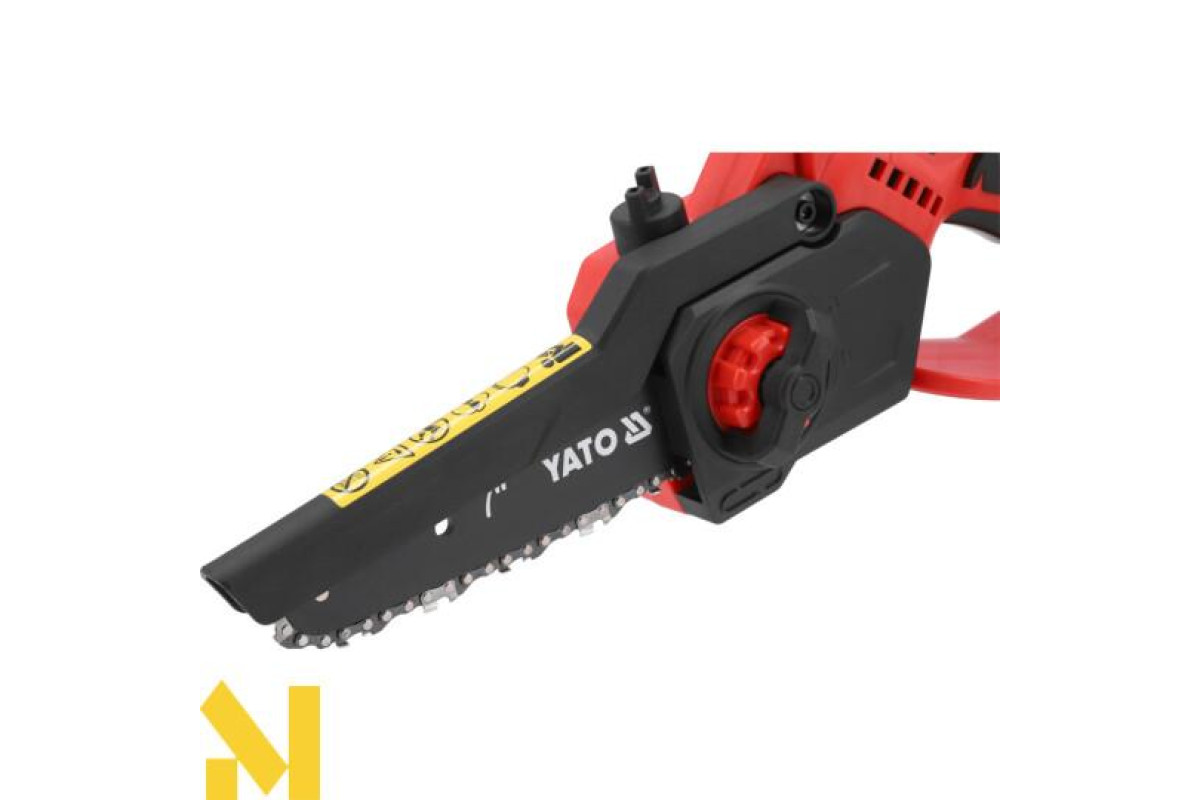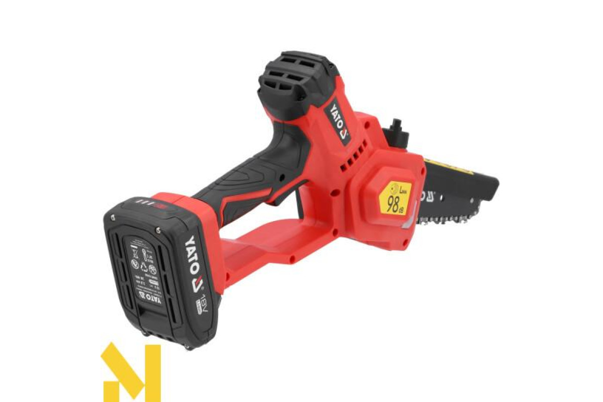 Міні-ланцюгова пила з безщітковим двигуном для високої продуктивності різання. Інструмент призначений для зрізання сучків дерев, гілок, здерев'янілих пагонів чагарників і т. д. Він поєднує в собі простоту використання, потужність і безпеку в роботі. Ланцюг змащується автоматично, що впливає на термін служби шини, і ланцюг рідше вимагає заточування. Прогумована кришка ручки забезпечує зручне та надійне захоплення.